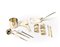 Lotto composto da sette portatovaglioli modello "Grafis", due posate a servire modello "Pale", un mestolo e quattro posate. Produzione Sabattini, Bregnano, secolo XX. Metallo argentato.