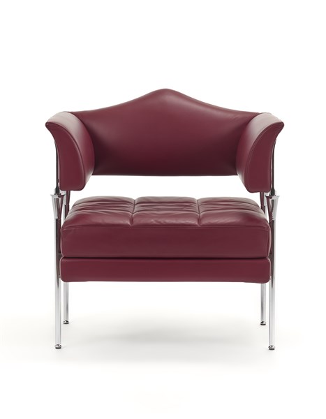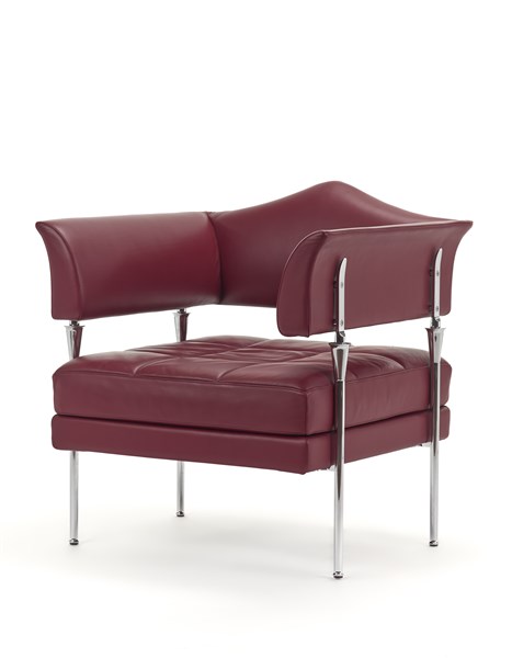 Poltrona modello "Hydra Sirius". Produzione Poltrona Frau, Italia, produzione recente. Struttura in metallo cromato e rivestimento in pelle bordeaux. Recante etichetta del produttore. (cm 75x82x70)