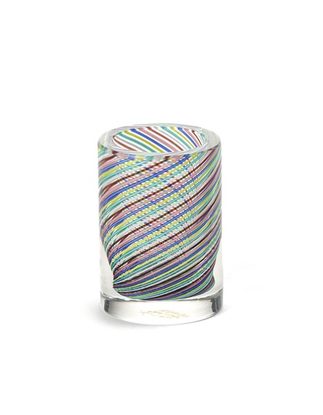 Paolo Venini Piccolo vaso in vetro soffiato cristallo con decoro a fili multicol