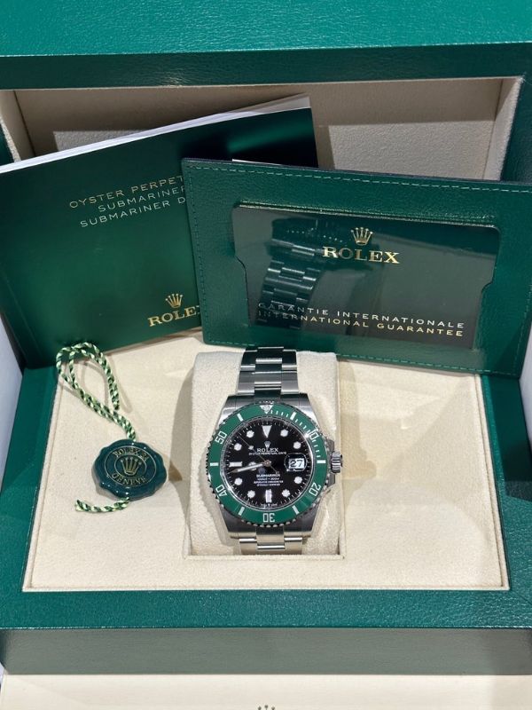 ROLEX SUBMARINER STARBUCKS Marca Rolex Modello (Orologio) Submariner Date Numero di referenza 126610lv Carica Automatico Materiale della cassa Acciaio Materiale cinturino Acciaio Anno di produzione 2021/2022 Orologio con documenti originali Calibro Carica Automatico Cassa Materiale della cassa Acciaio Diametro 41 mm Impermeabile 30 ATM Materiale lunetta Ceramica Vetro Vetro zaffiro Quadrante Nero Numeri sul quadrante Senza numeri Cinturino Materiale cinturino Acciaio Colore cinturino Acciaio Chiusura Déployante Materiale chiusura Acciaio