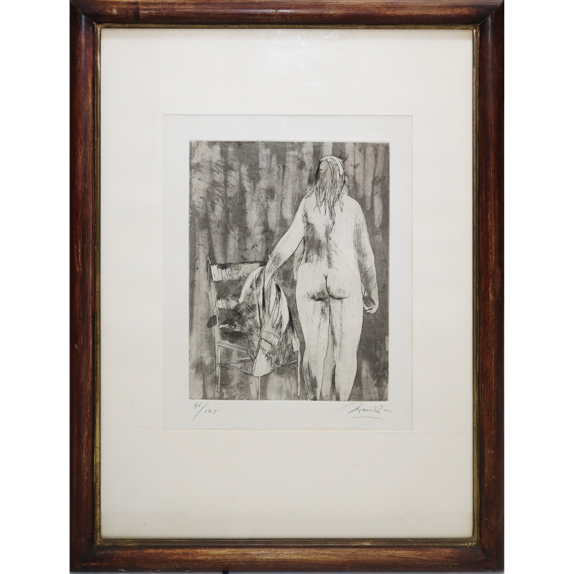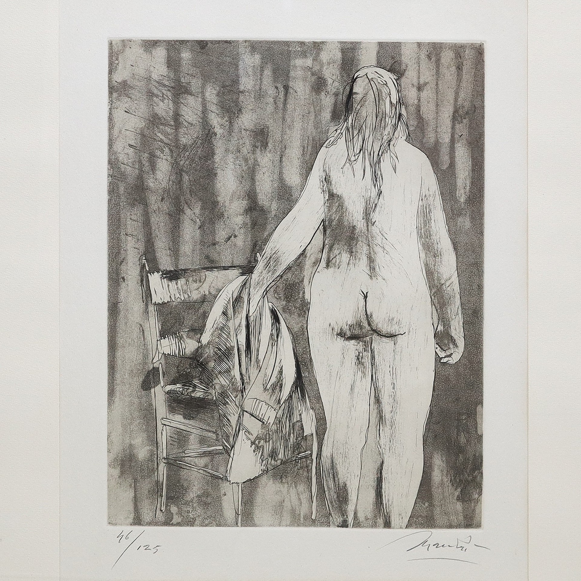 Giacomo Manzù, Nudo di donna con sedia Litografia Es. n. 46/125, Firmata in basso a destra.