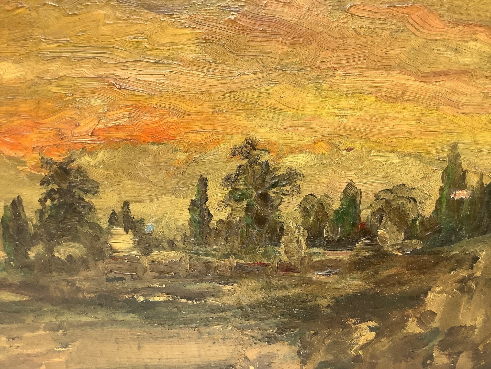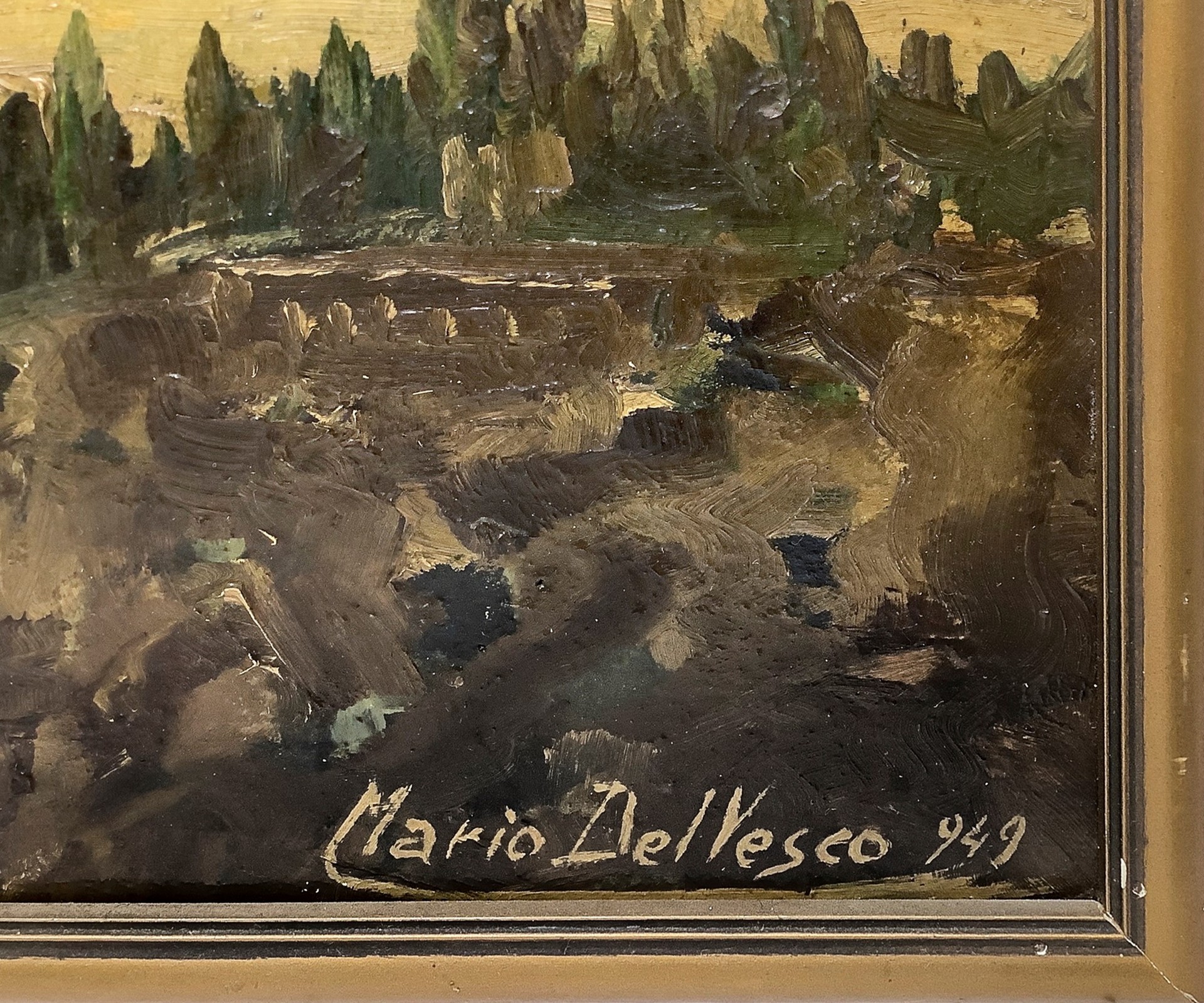 Paesaggio campestre 20x44 cm Dipinto ad olio su tela Firmato Mario Del Vesco e datato 1949 in basso a destra.