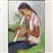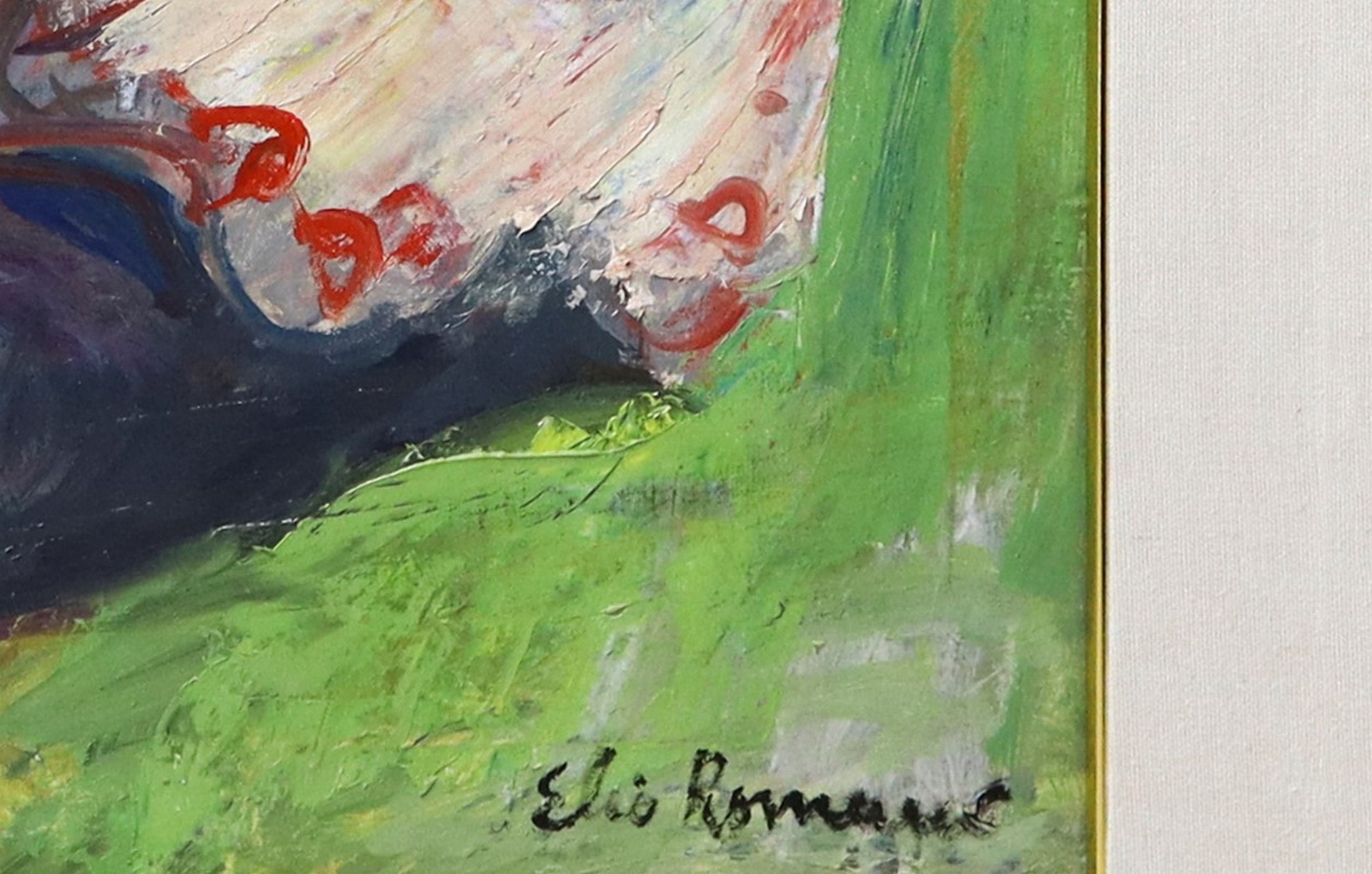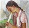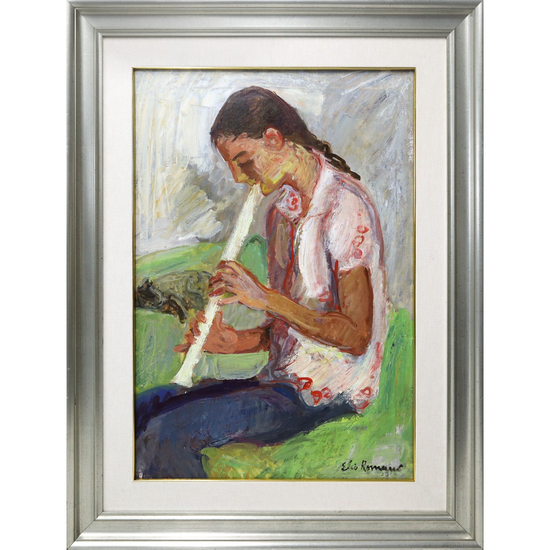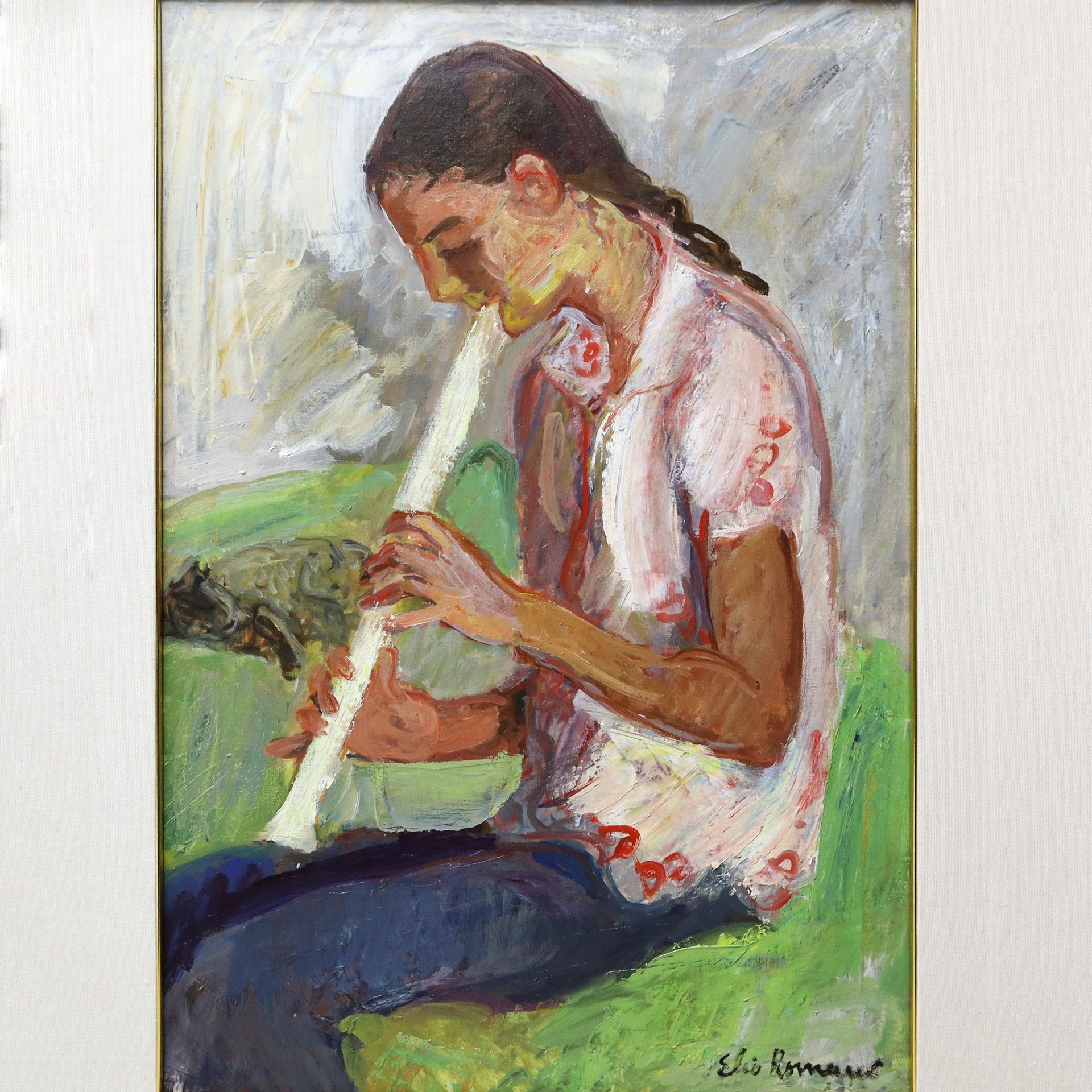 Elio Romano (Trapani 1909-Catania 1996) - Ragazza che suona il flauto Cm 80x54, in cornice cm 103x76 Dipinto ad olio su tela