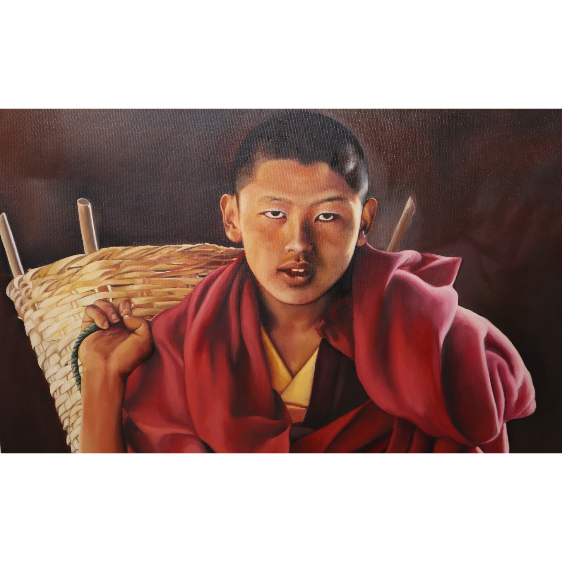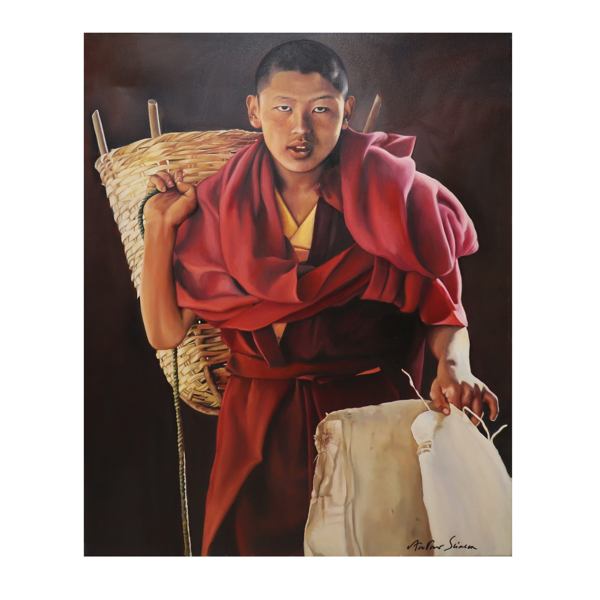 Antonio Sciacca (Catania 1957) - Ragazzo orientale con cesto cm 100 x 80 Olio su tela Firmato in basso a destra e sul retro
