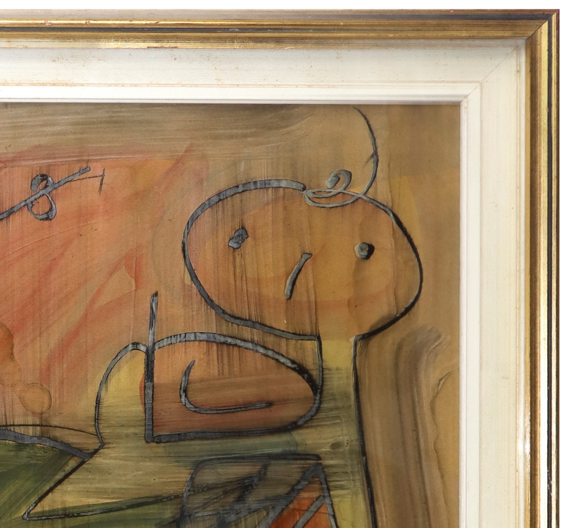 Aldo Gentilini (Genova 7 febbraio 1911-Volpeglino 10 agosto 1982) - Raffigurazione astratta cm 70x50, in cornice 80 x 60 acrilico su cartoncino Firmato in basso a sinistra.