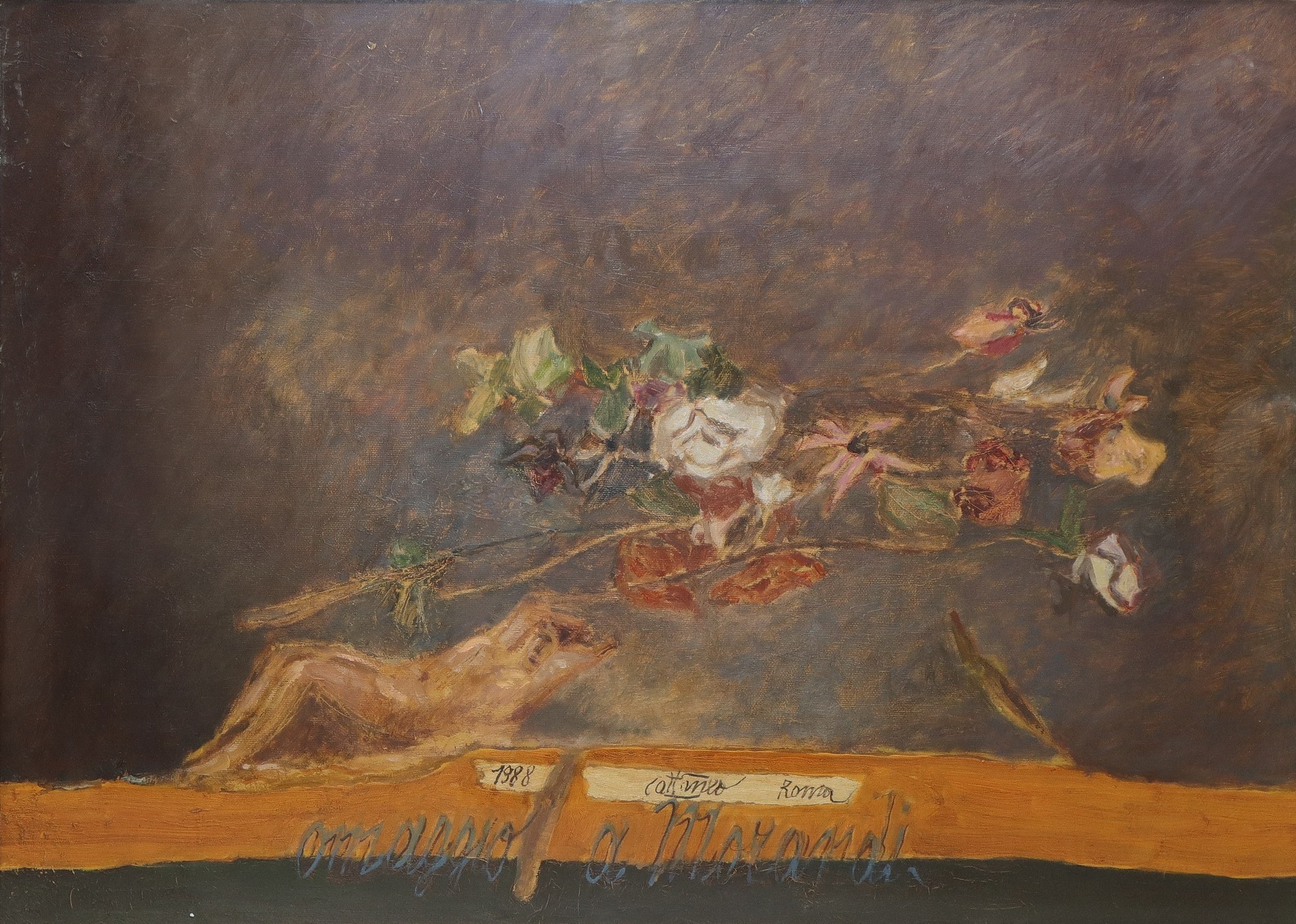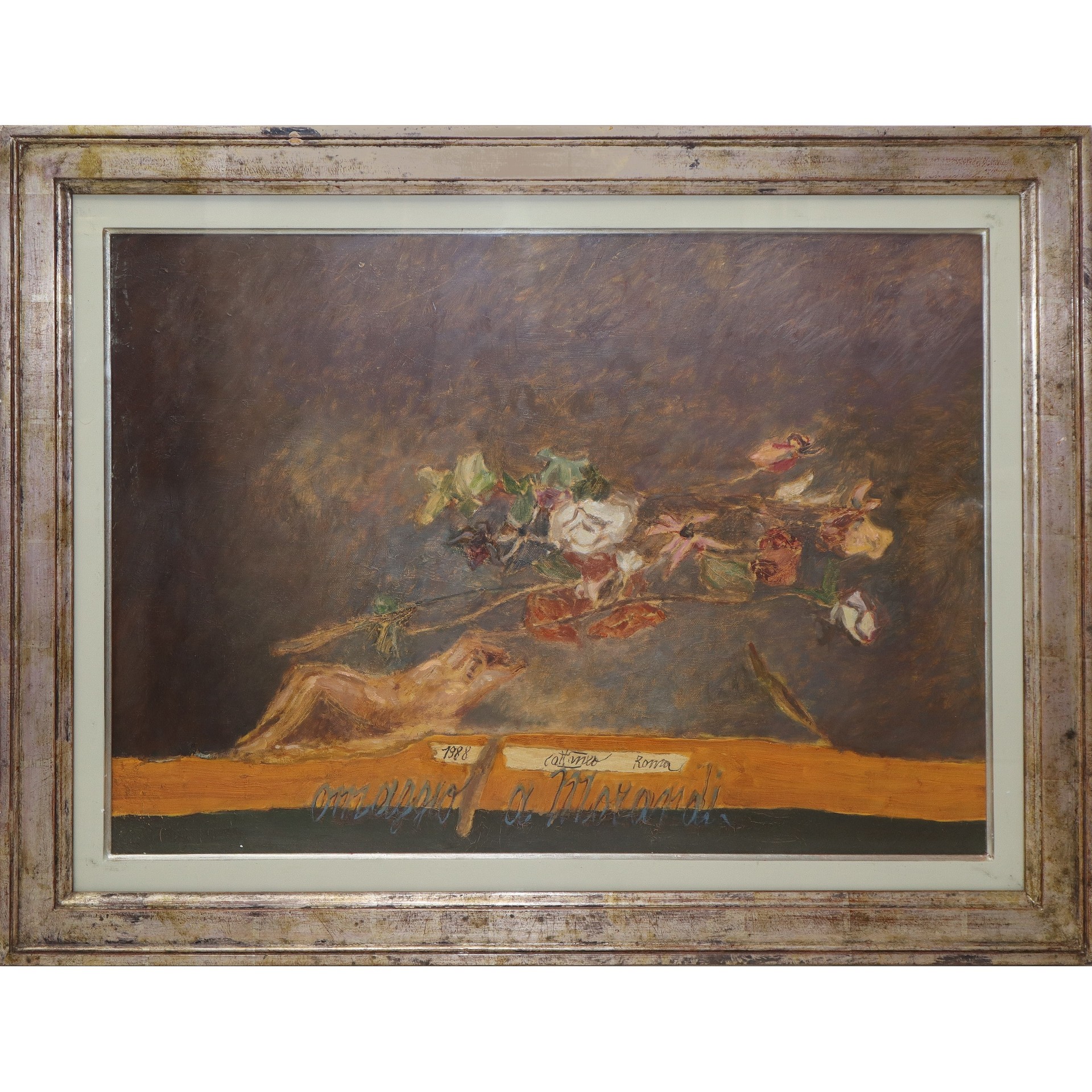 Carlo Cattaneo (1930-2009) - Omaggio a Morandi, 1988 cm 50 x 70 in cornice 65 x 85 Olio su tela Firmato in basso al centro