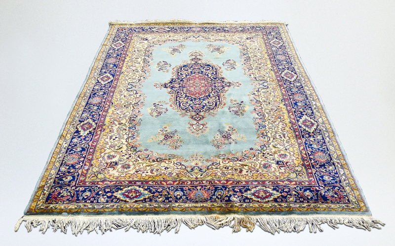 TAPPETO PERSIANO - PERSIAN CARPET fondo celeste, campo con medaglione centrale cm 202x305