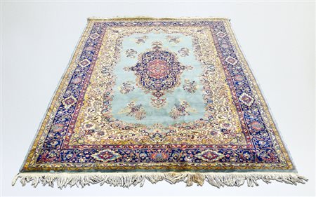 TAPPETO PERSIANO - PERSIAN CARPET fondo celeste, campo con medaglione...