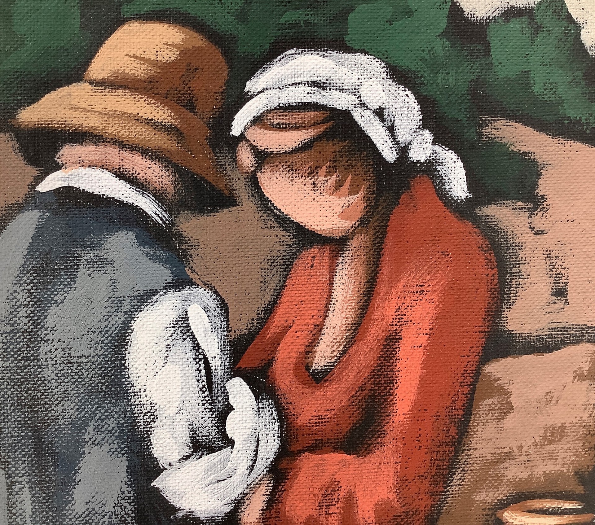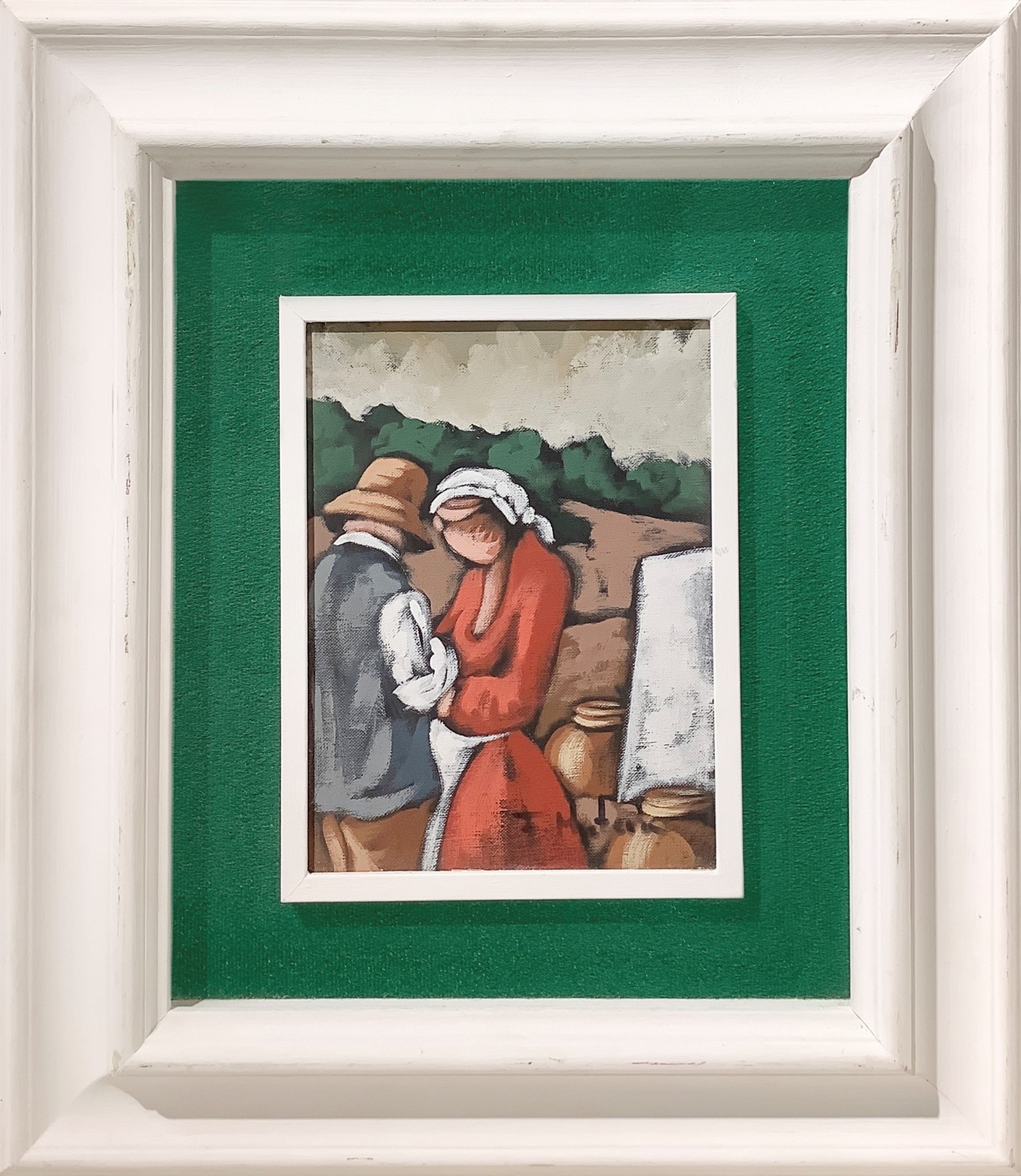 Francesco Matera - Coppia di contadini con brocche cm 23x17, in cornice 49x44 Olio su cartone telato