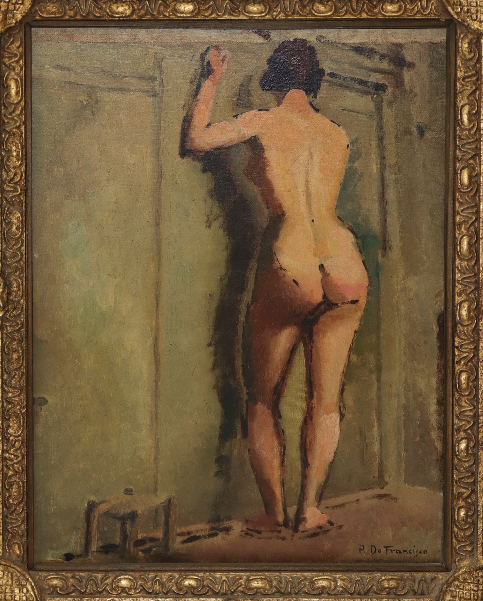Pietro De Francisco (Palermo 1873-1969) - Nudo di donna di spalle cm 45 x 45, in cornice 63 x 53 Olio su tela Firmato sul retro P. De Francisco.