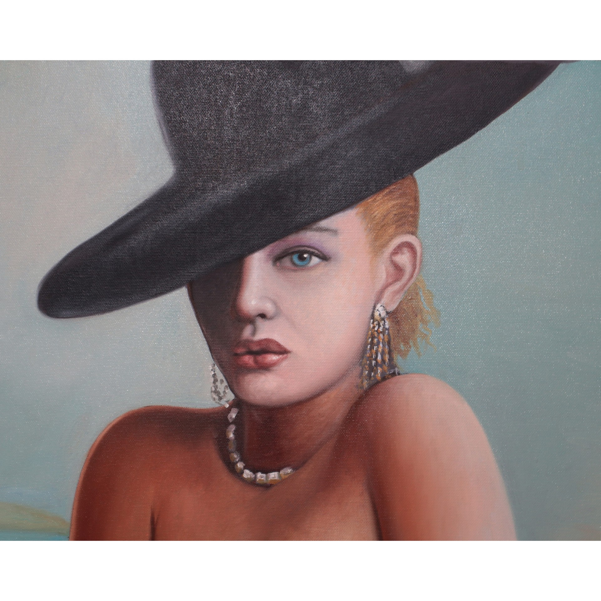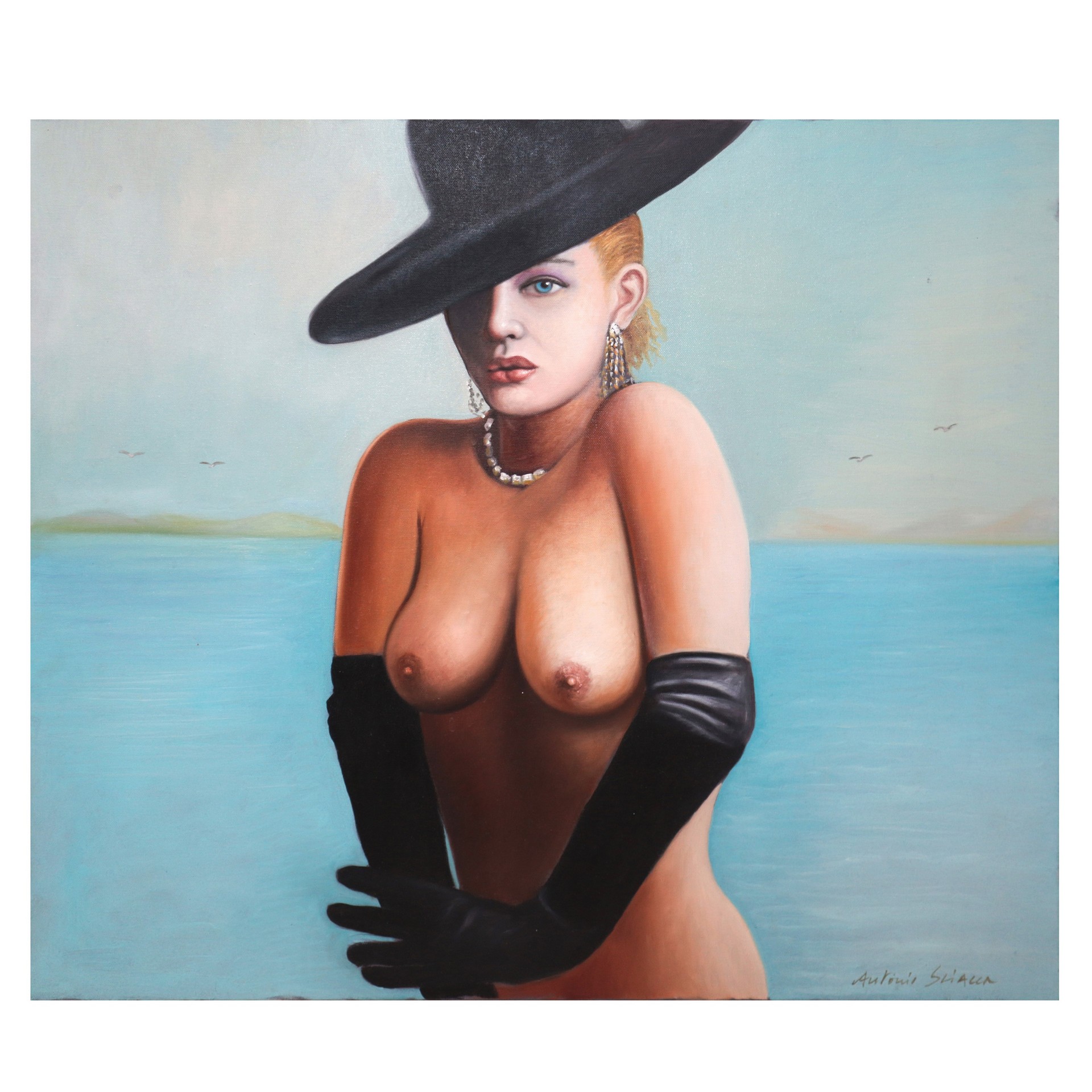 Antonio Sciacca (Catania 1957) - Nudo di donna con cappello e guanti cm 80 x 70 Olio su tela Dedica e firma dell'autore sul retro