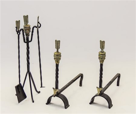 SET DA CAMINO IN FERRO BATTUTO E BRONZO - WROUGHT-IRON AND BRONZE FIREPKACE...