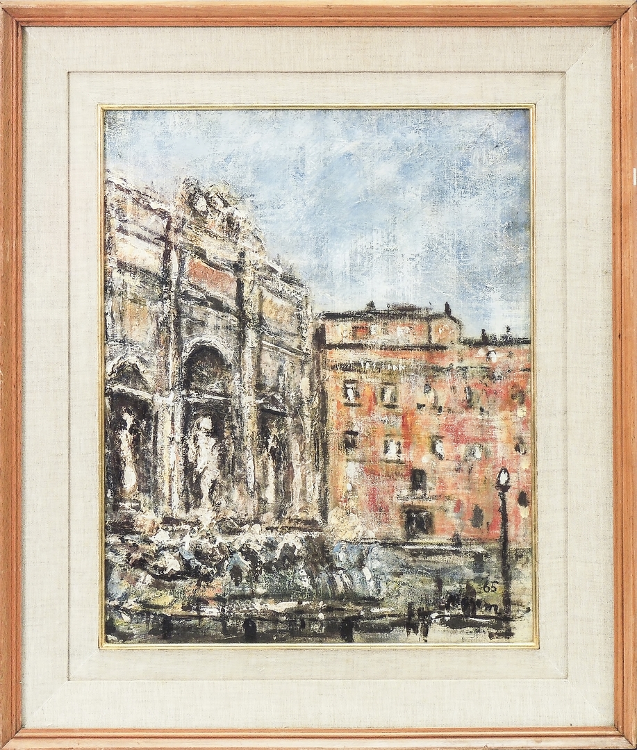 RENZO NISSIM Fontana di Trevi olio su tela - oil on canvas, firmato e datato 65, in cornice cm 50x40 Al verso reca cartiglio - With label on reverse