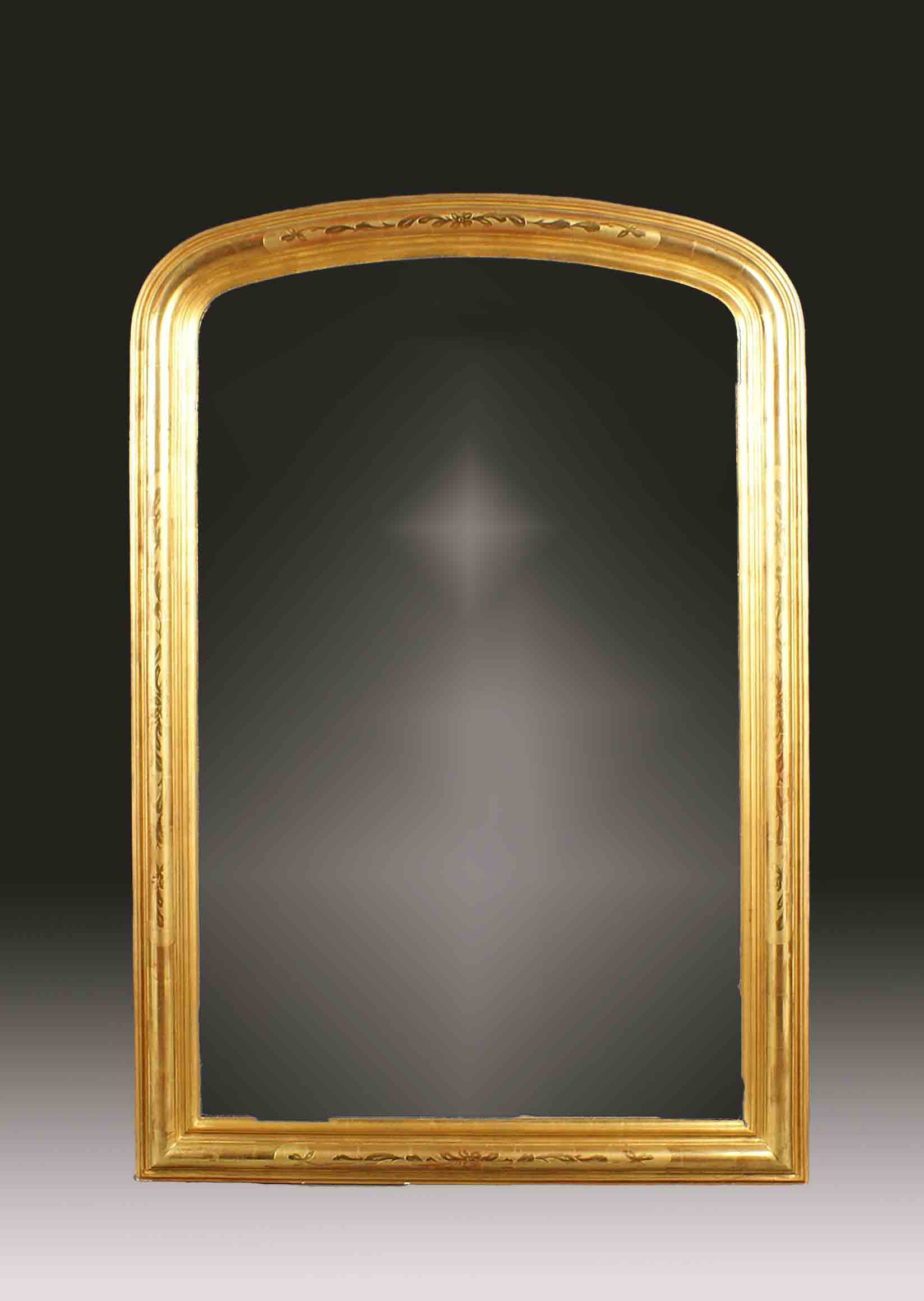 Grande specchiera con cornice in legno dorato inciso di linea stondata, fine del XIX secolo, cm. 165x110.
