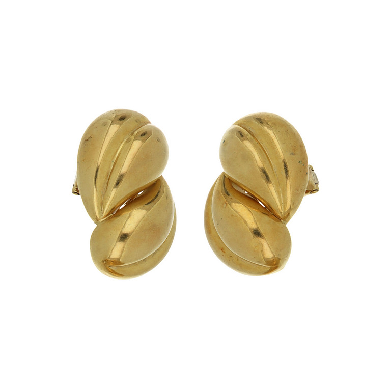 Pomellato orecchini in oro giallo a forma di foglie bombate contrapposte clips a lobo senza perno.