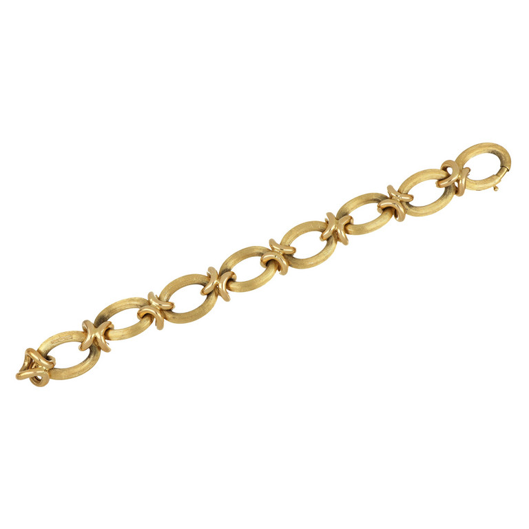 Bracciale in oro giallo maglia ovale satinata e nodi lucidi.