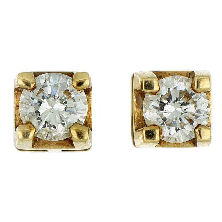 Orecchini a 'Tappabuchi' in oro giallo squadrati con diamanti taglio brillante per complessivi ct 0 50 ca.