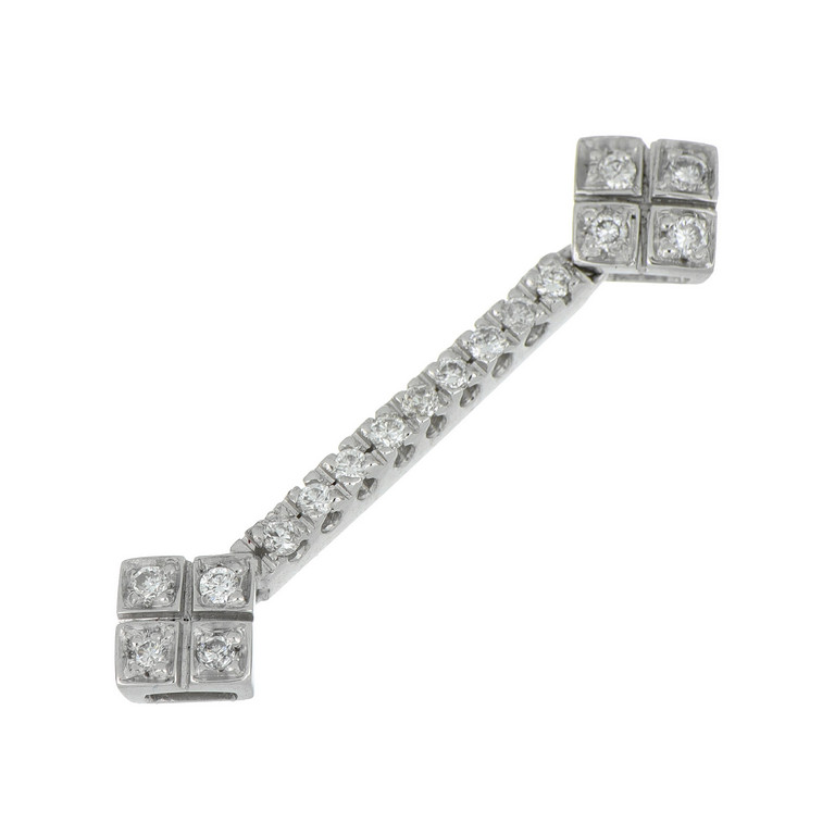 Ciondolo in oro bianco a barretta con terminali squadrati e snodati piccoli diamanti taglio brillante.