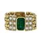 Anello in oro giallo a maglia snodata con al centro vivace smeraldo taglio rettangolare allungato di ct 2 0 ca piccoli diamanti taglio brillante a lato.