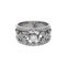 Anello in platino a fascia diamanti taglio 8/8 e brillante nella parte superiore ct 0 60 ca. decorata con incisioni sul gambo.