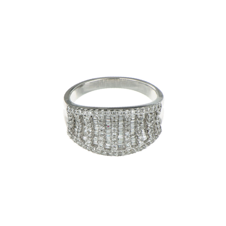 Anello a fascia in oro bianco diamanti taglio brillante e baguette per ct 0 81.