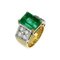 Anello in oro giallo e bianco a fascia al centro grande smeraldo colombiano di stimati ct 8 10 e 8 diamanti taglio brillante sul gambo per stimati ct 1 35.