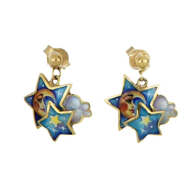 Rivalta simpatici e caratteristici orecchini in oro giallo con ciondoli decorati a smalti policromi raffiguranti stelline.