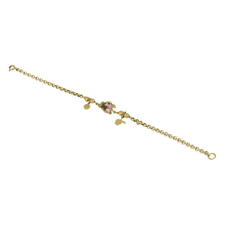 Rivalta simpatico e caratteristico braccialetto in oro giallo con ciondoli decorati a smalti policromi raffiguranti figure di animaletti.