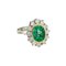 Anello in oro bianco e giallo a 'Margherita' smeraldo colombiano taglio ovale di ct 2 80 ca. contornato da diamanti taglio brillante per stimati ct 1 20.