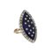 Cusi fascinoso anello in oro rosso e platino di forma a figaro con smalto blu tempestato di diamanti taglio rosa altri a contornare tutto il perimetro.