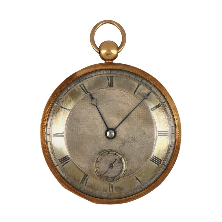 Robert e Courvoisier orologio da tasca di grande diametro in oro rosso prima metà del 1800 movimento carica a chiavetta mancante della stessa quadrante in argento lavorato a guilloché numeri arabi e piccoli secondi al 6.