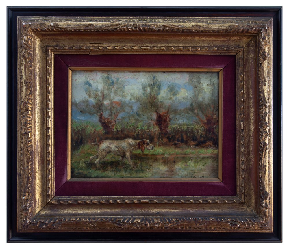 ALFREDO PARIANI MILANO 1876 - 1931 Cane da punta Olio su tavola cm 20x28