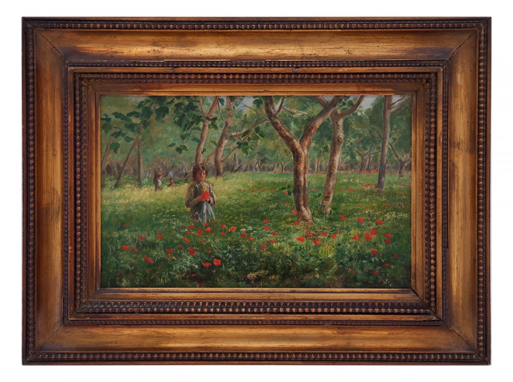 SALVATORE BRUNO RIESI (CL) 1871 - ? Paesaggio in provincia di Napoli Olio su tela cm 25,5x39,5