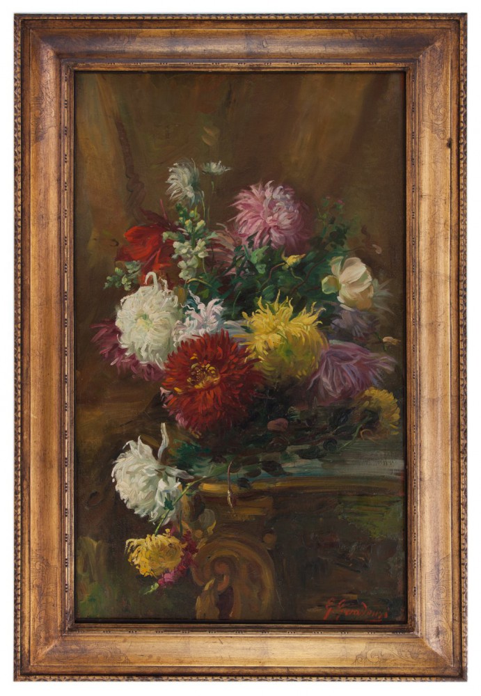 GIUSEPPE GAUDENZI BERGAMO 1863 -1941 Dalie Olio su tela cm 120x60