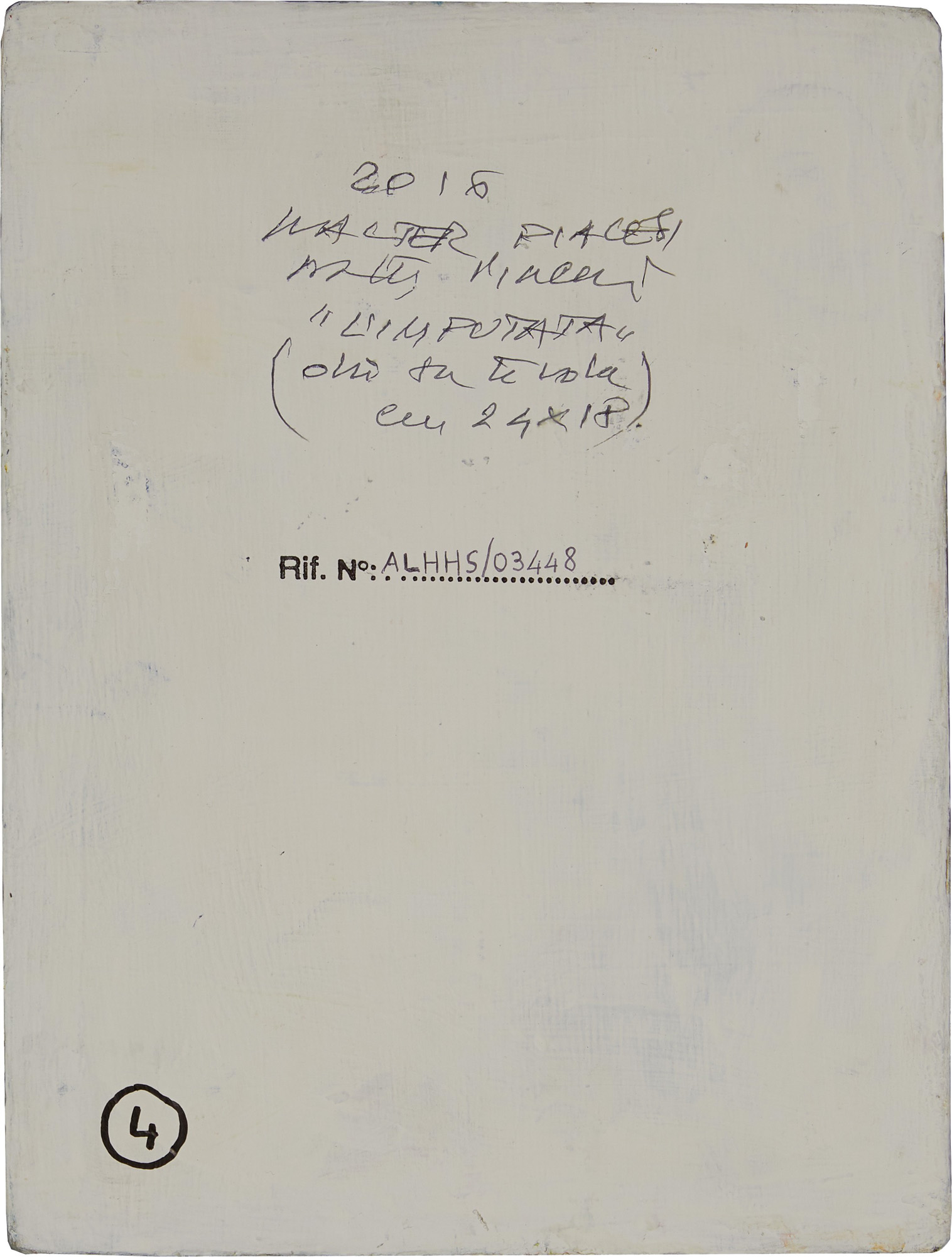 Data, firma, titolo, tecnica, misure e Rif. n. ALHHS/03448 sul retro