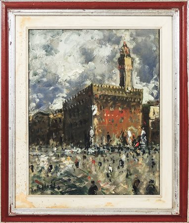 EMANUELE CAPPELLO Piazza della Signoria olio su tela - oil on canvas, firmato, in cornice cm 50x40