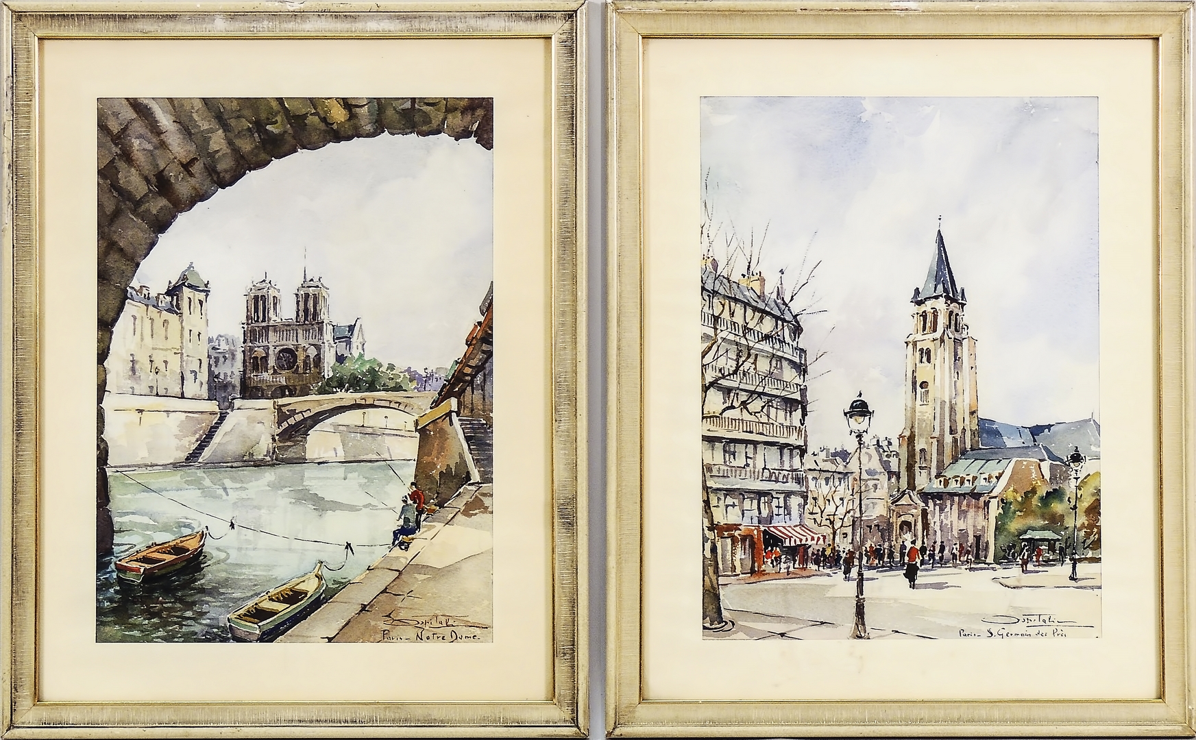 GIOVANNI OSPITALI Scorci parigini - Paris Views coppia di acquerelli su carta...