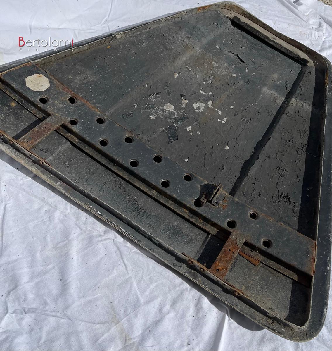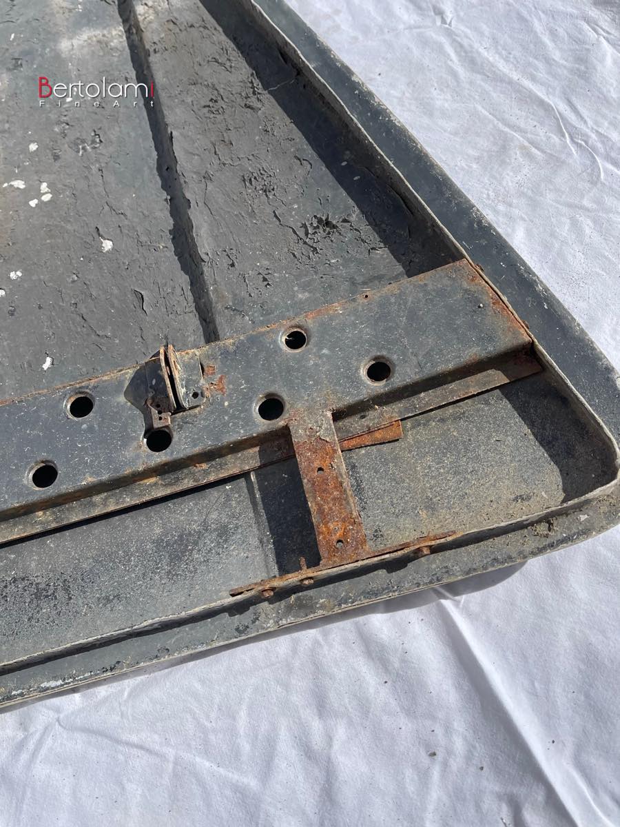 Con colore e stuccature dell’epoca composto da parte superiore in alluminio e due inserti di metallo dove va il gancio di sicurezza e cerniere imbullonate