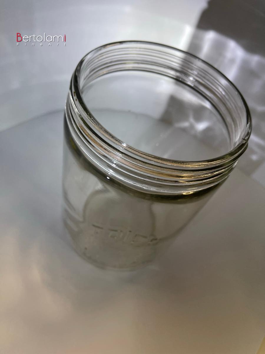 Composto da vaso vetro marchiato Trico Originale con scritta in rilievo