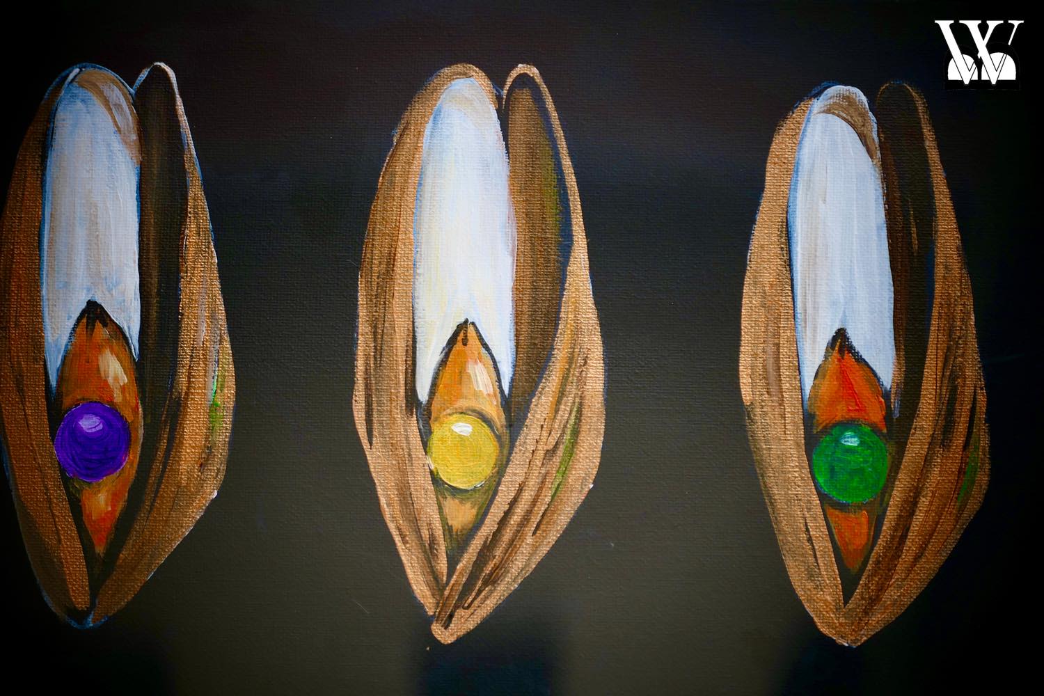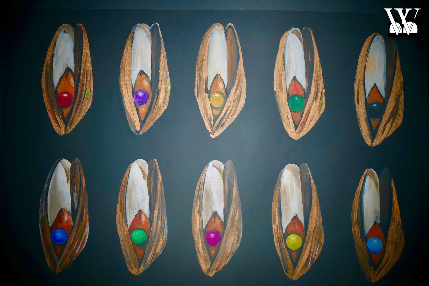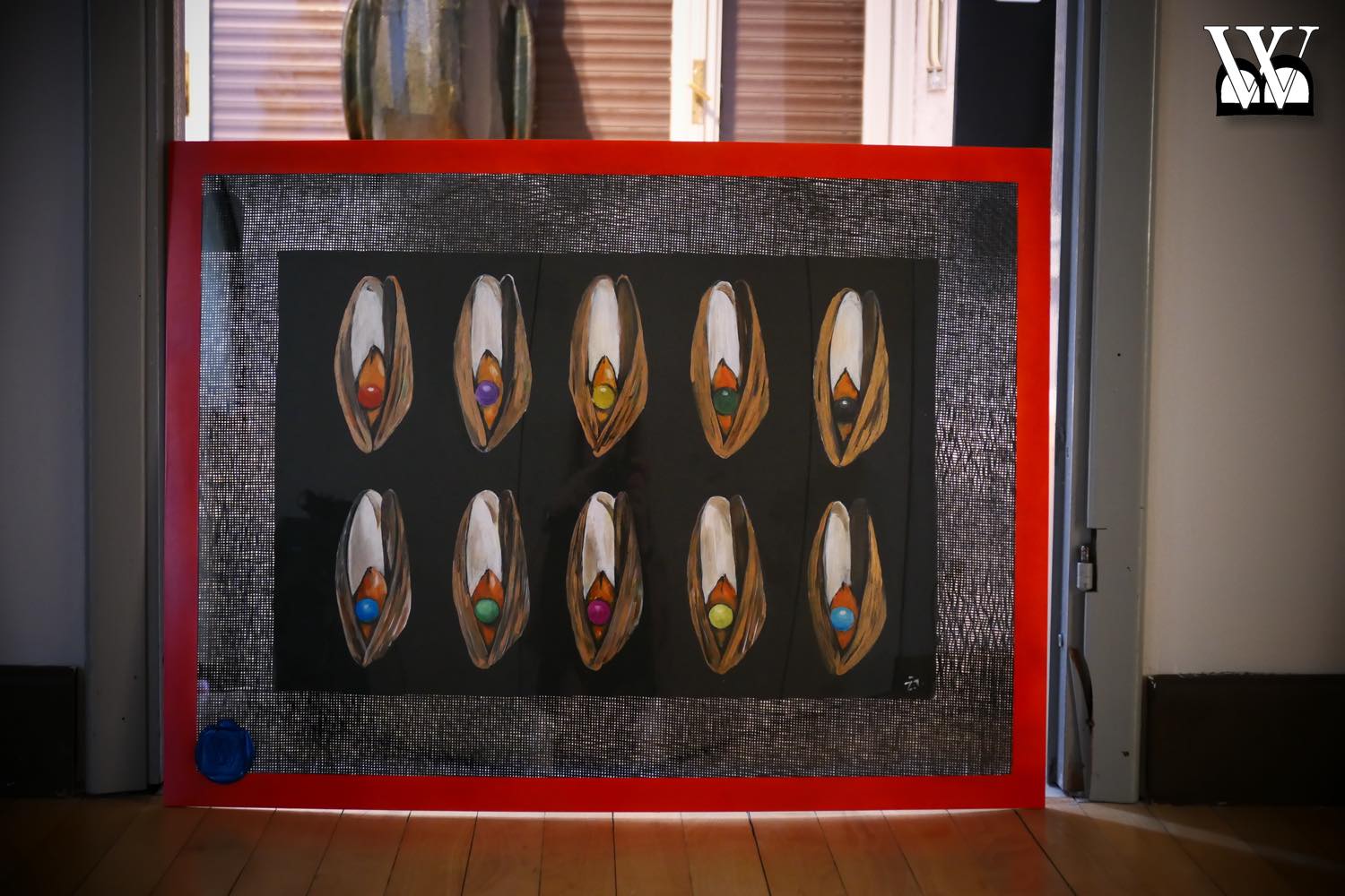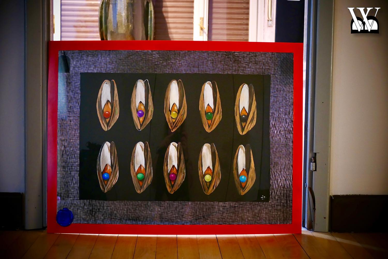 Questa opera è concettualmente simile a Choose your Banana, in questo caso creata con materiale riciclato da Motorsport. E’ interamente eseguita a mano, inclusa la parte in carbonio. Il significato è inerente alla domanda interiore, qual è il mio punto di forza? Su cosa devo concentrarmi per innalzare le mie virtù? I colori delle perle sono dedicate ai Chakra. Le perle sono dieci.