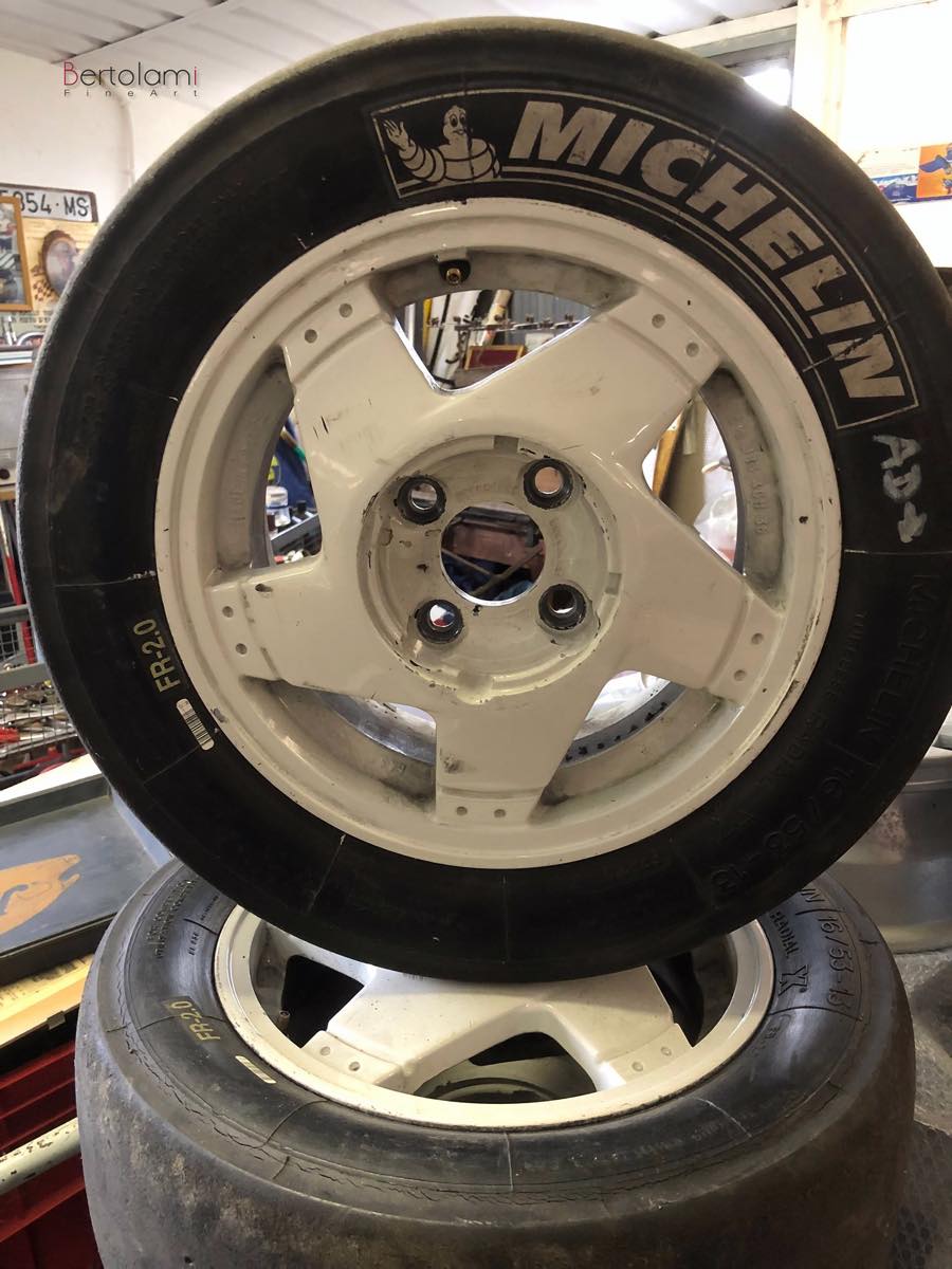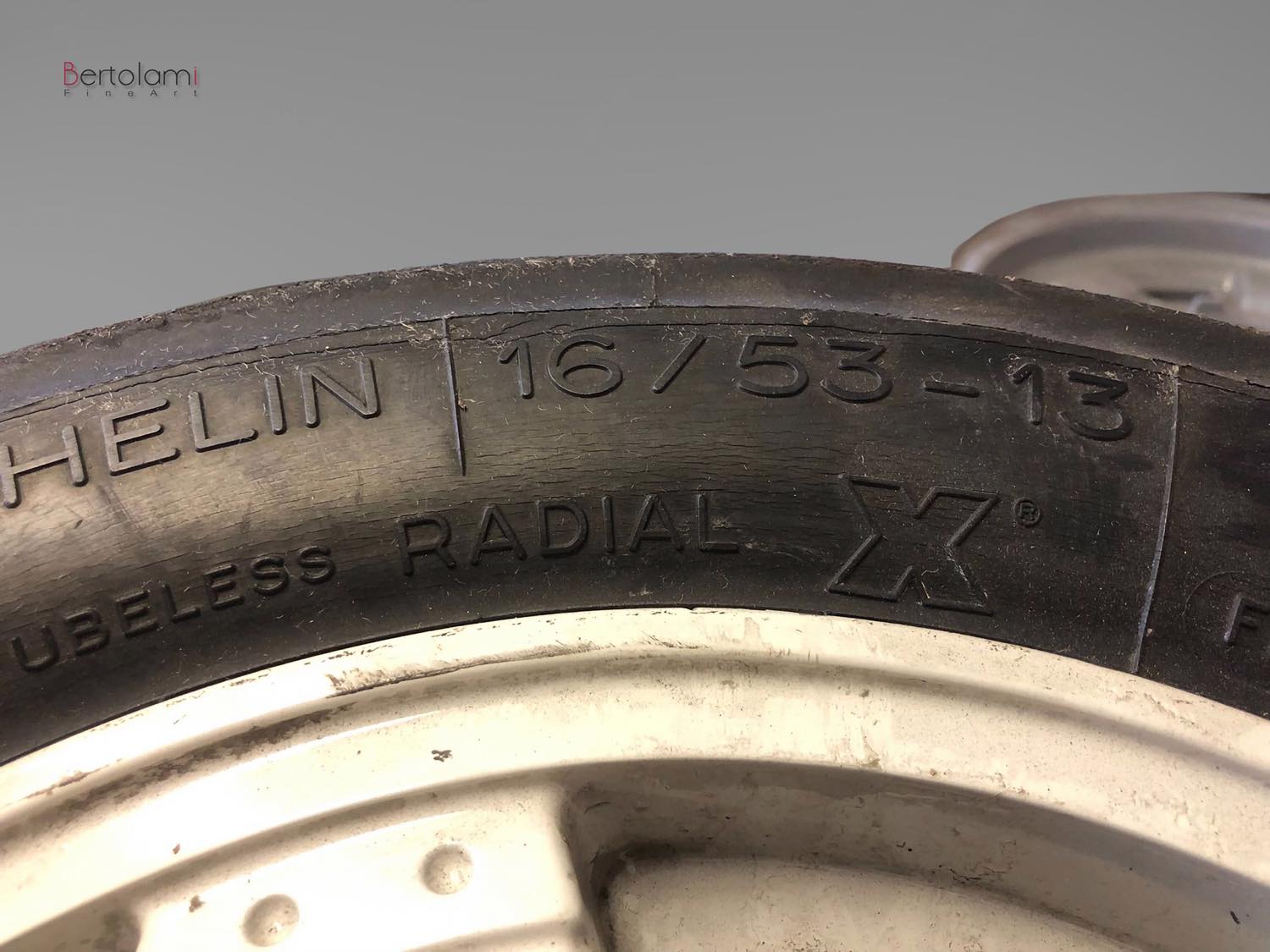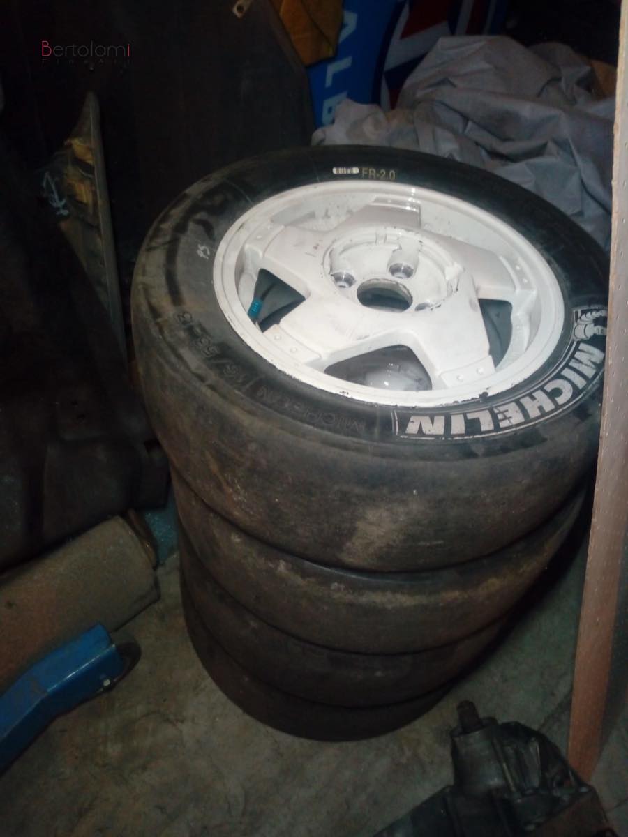 Pneumatici al 80% ma di dot vecchio quindi da sostituire in caso gara e cerchi originali ben tenuti senza ammaccature, Michelin 16/53 -13 e cerchi a cinque razze.