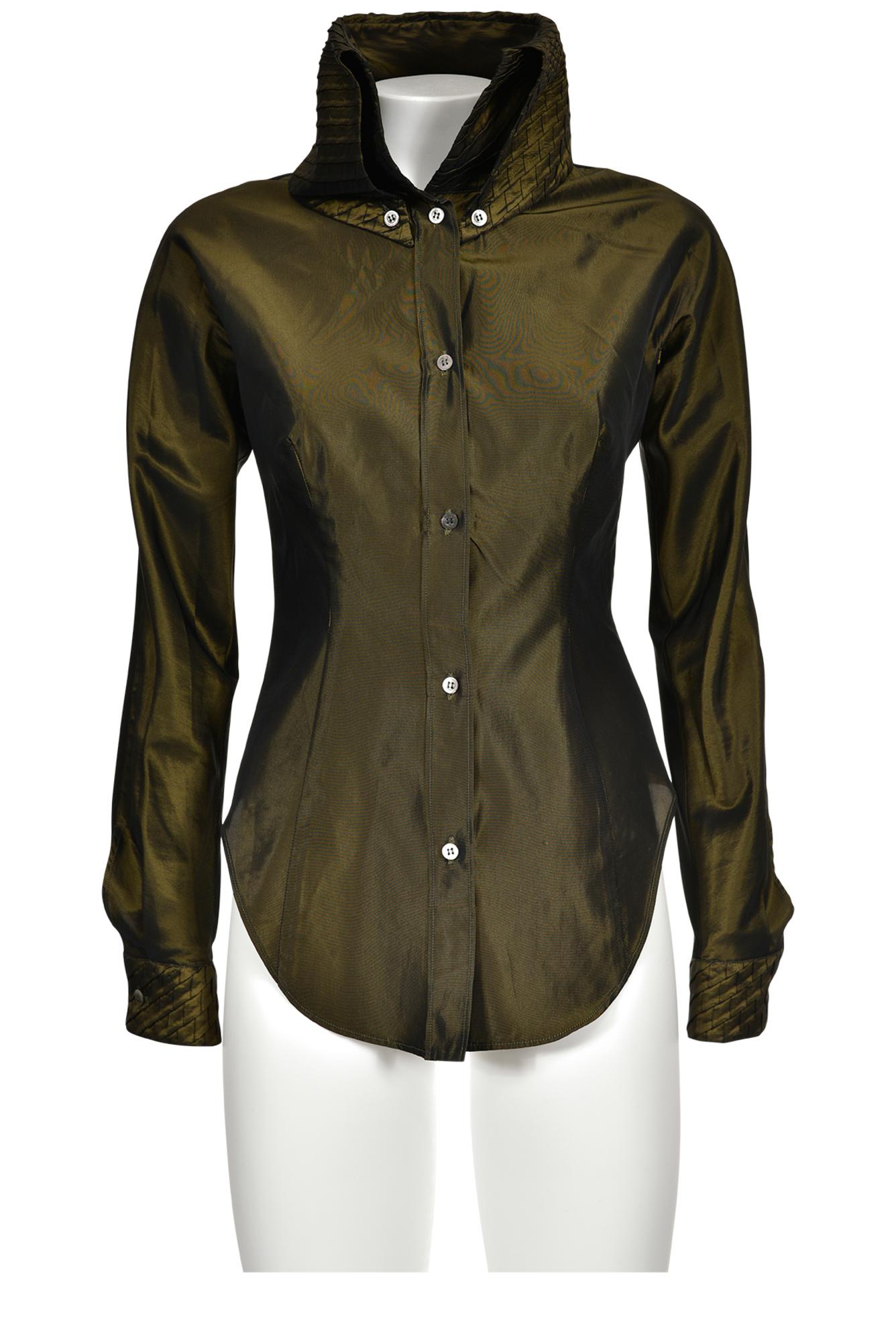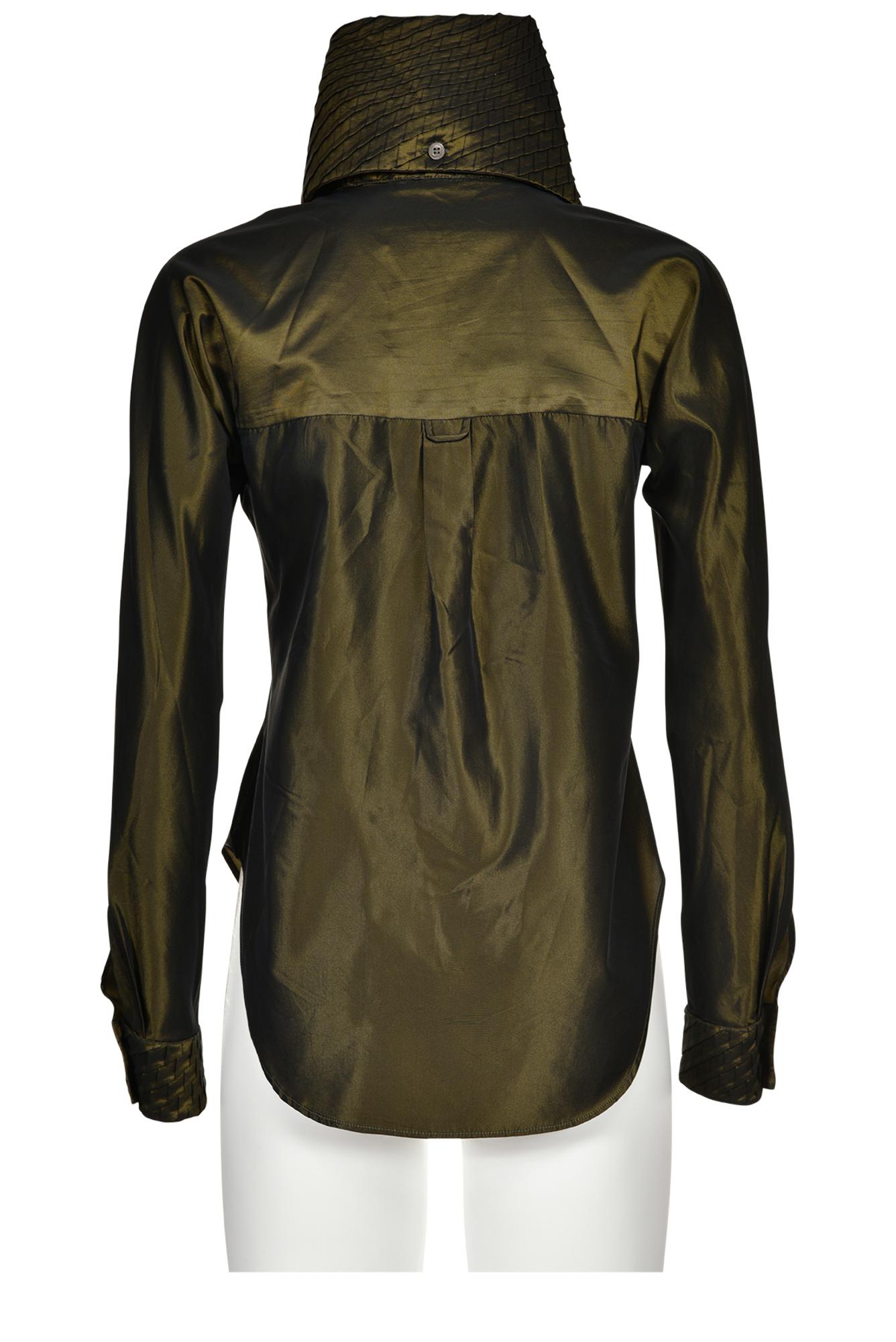 Shirt with armadillo effect at collar, cuffs and high folded collar with collar stays