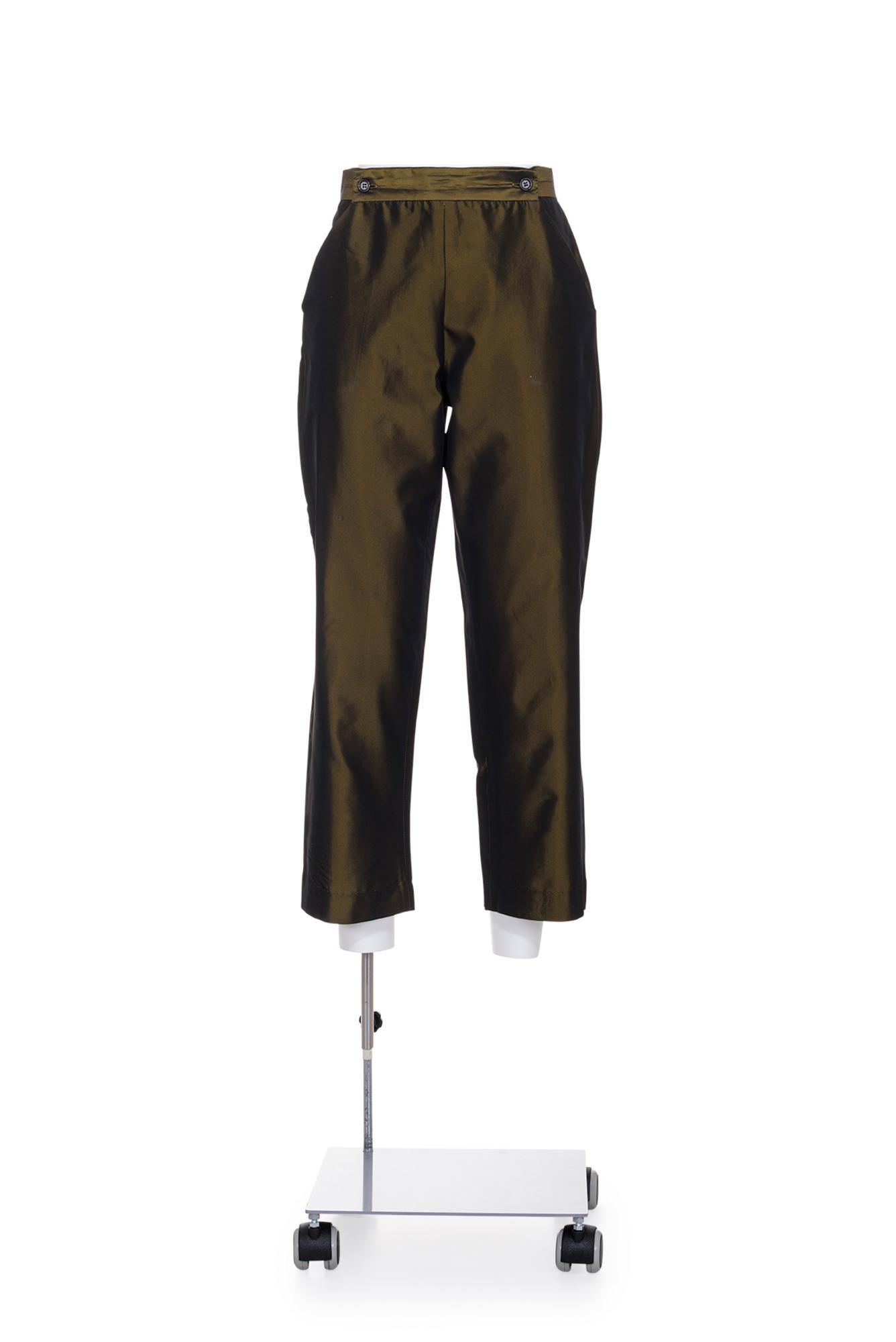 Raro abito due pezzi in taffeta' verde cangiante della collezione PE 97 "Bellmer la poupee"