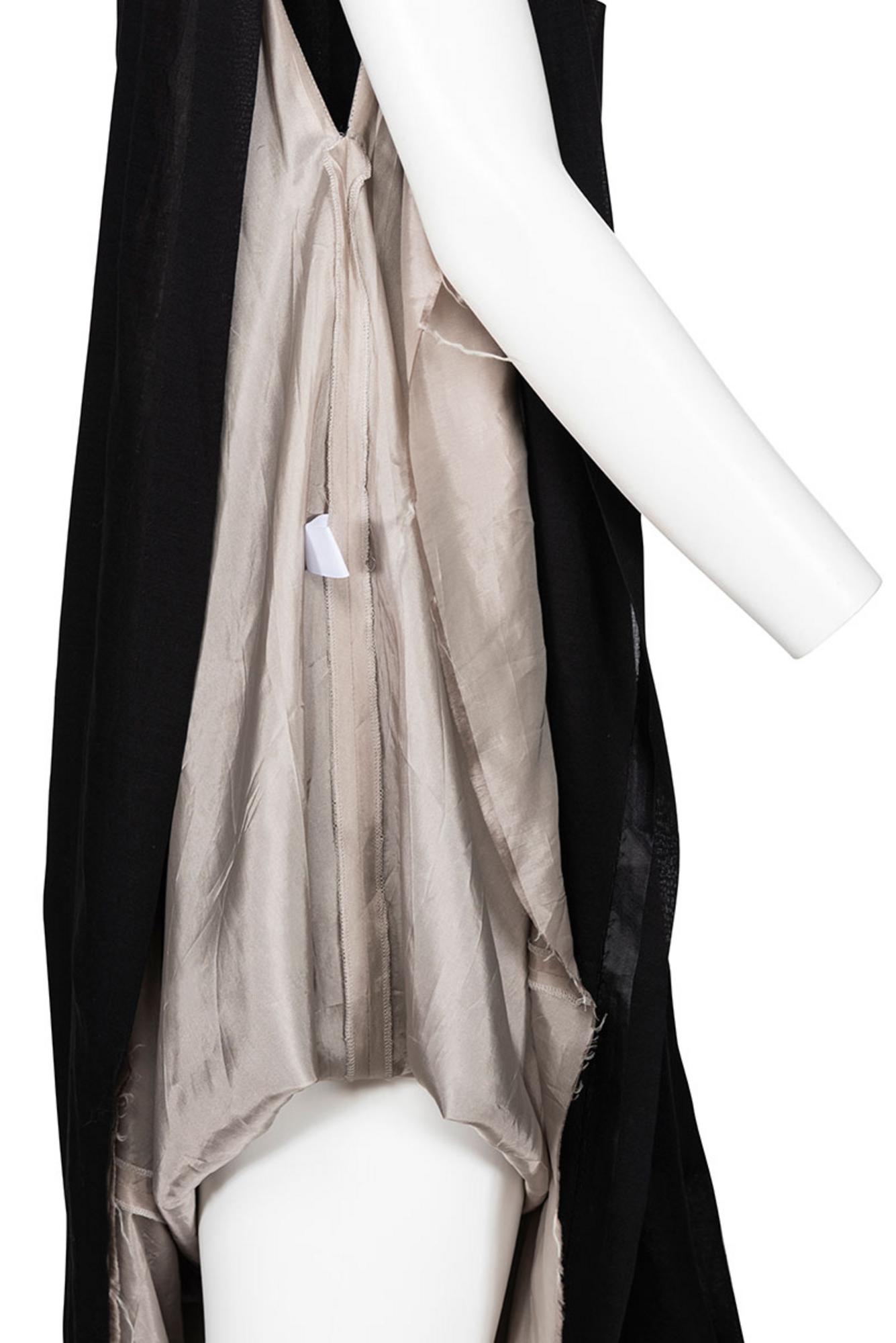 Iconic and rare sleeveless black dress with wide lateral draping at side and visible pale pink lining from SS 03 collection