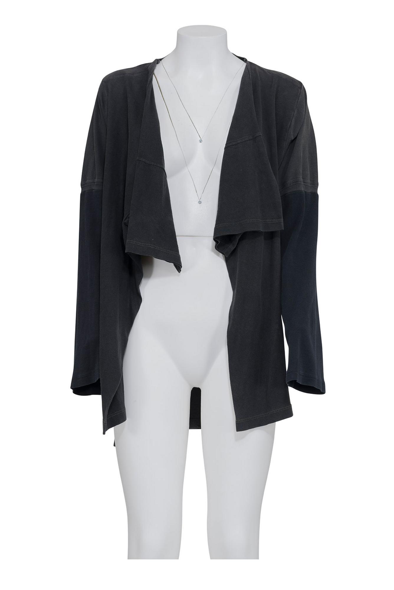 Cardigan artigianale nero e grigio customizzato della collezione AI 03