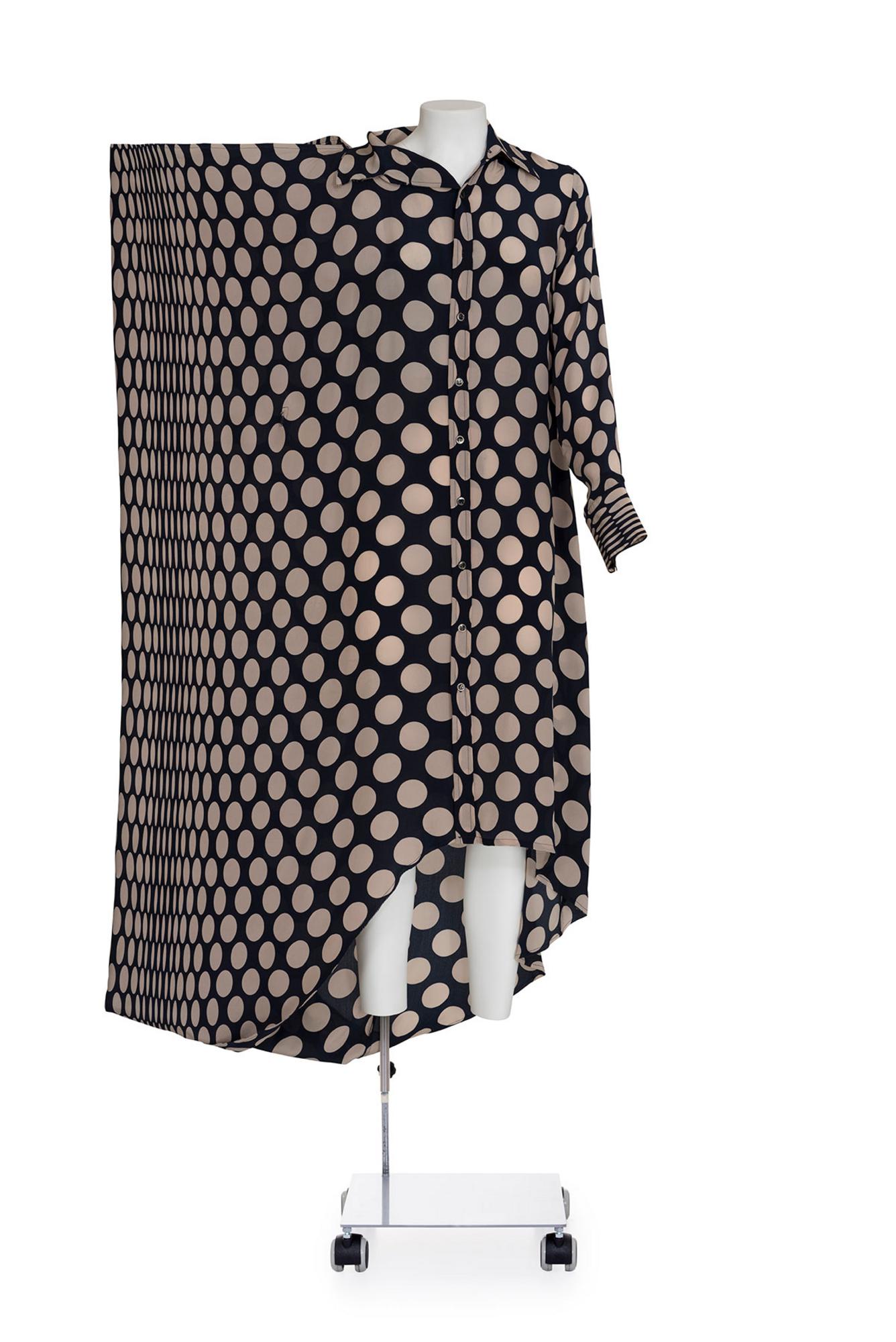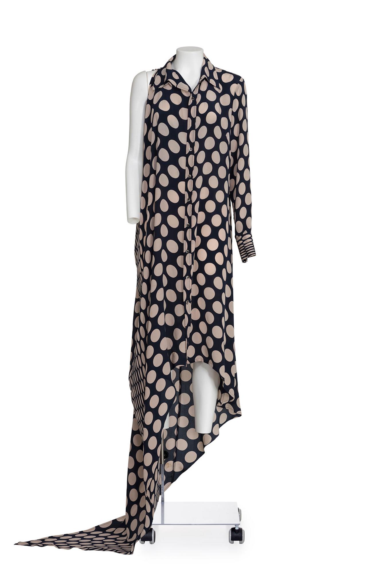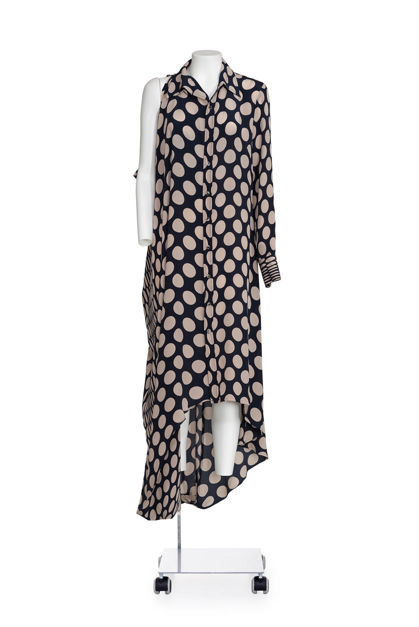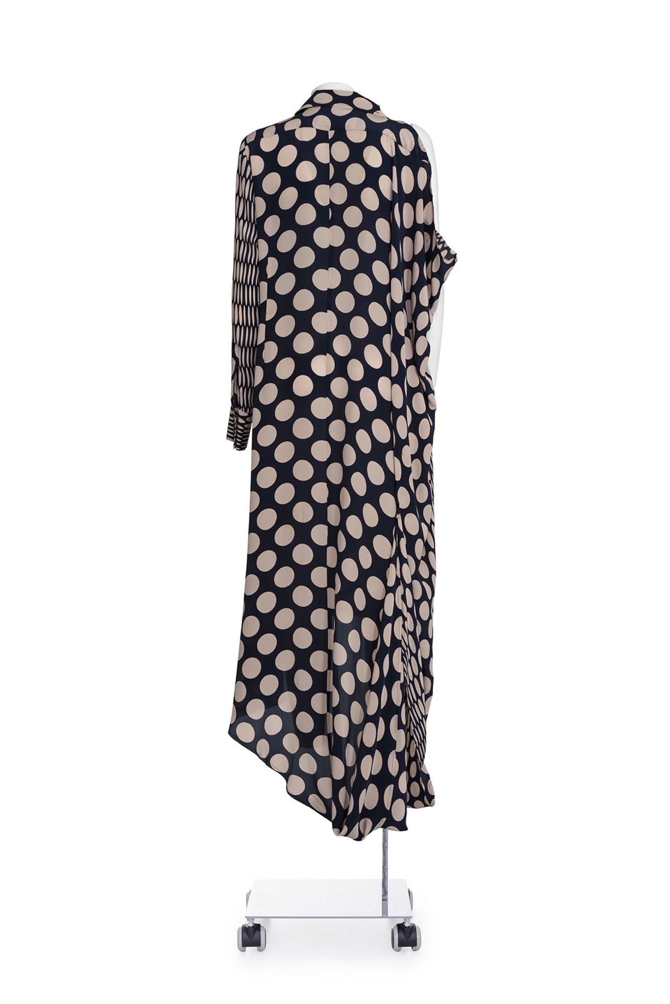 Lot 95 | MAISON MARTIN MARGIELA Rare asymmetrical long dotted shirt dress DESCRIPTION:...