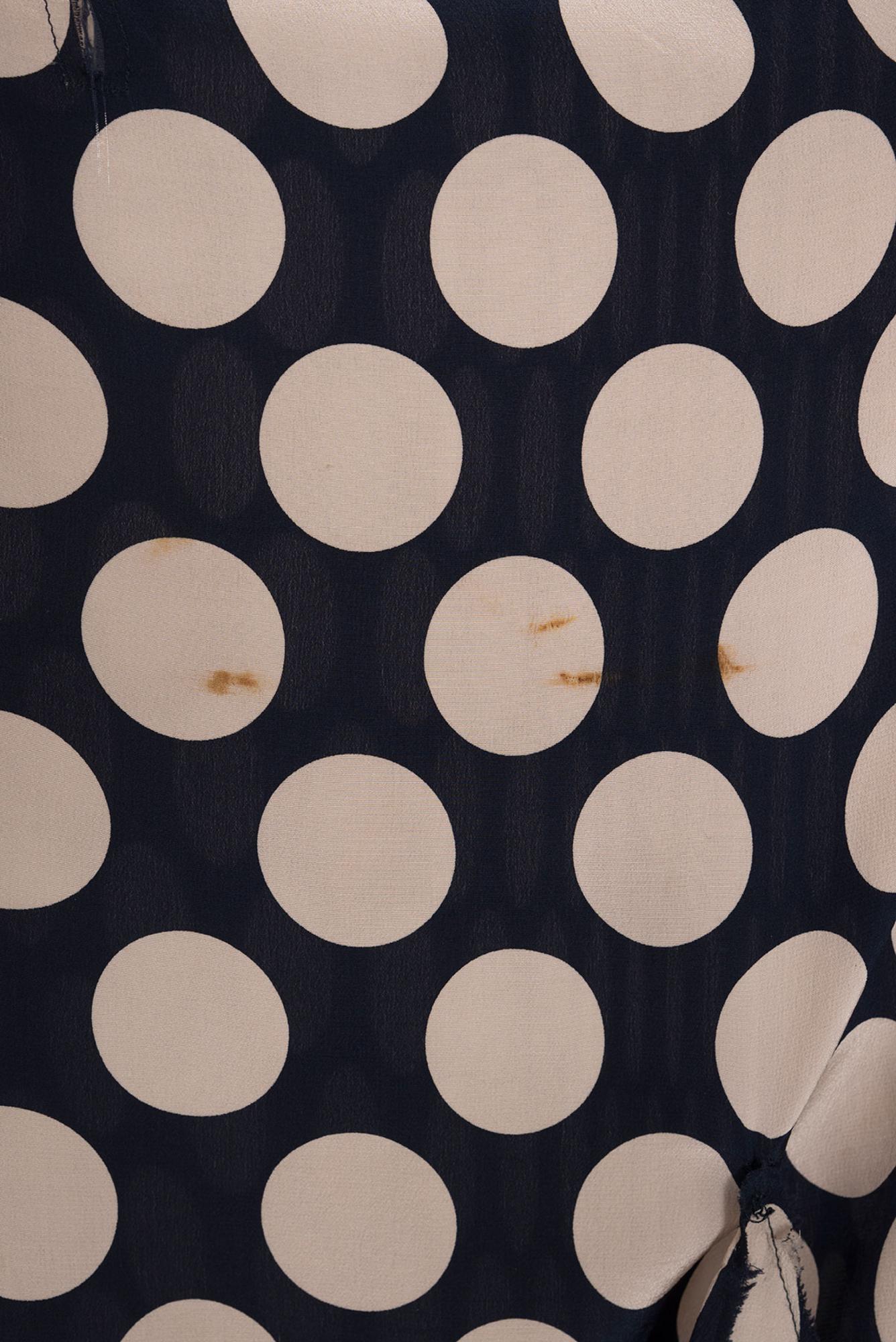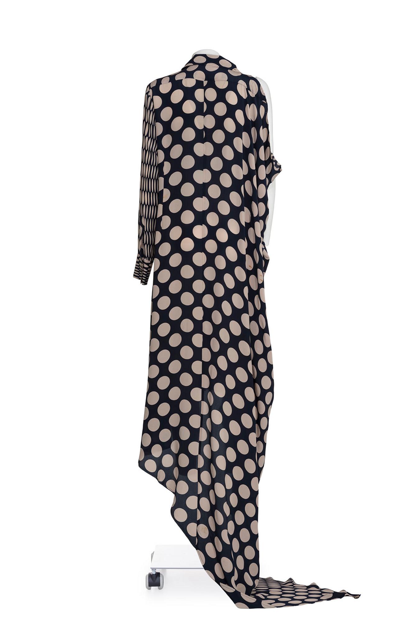 Rare asymmetrical long navy and beige dotted shirt dress with side adjustable train from SS 06 collection