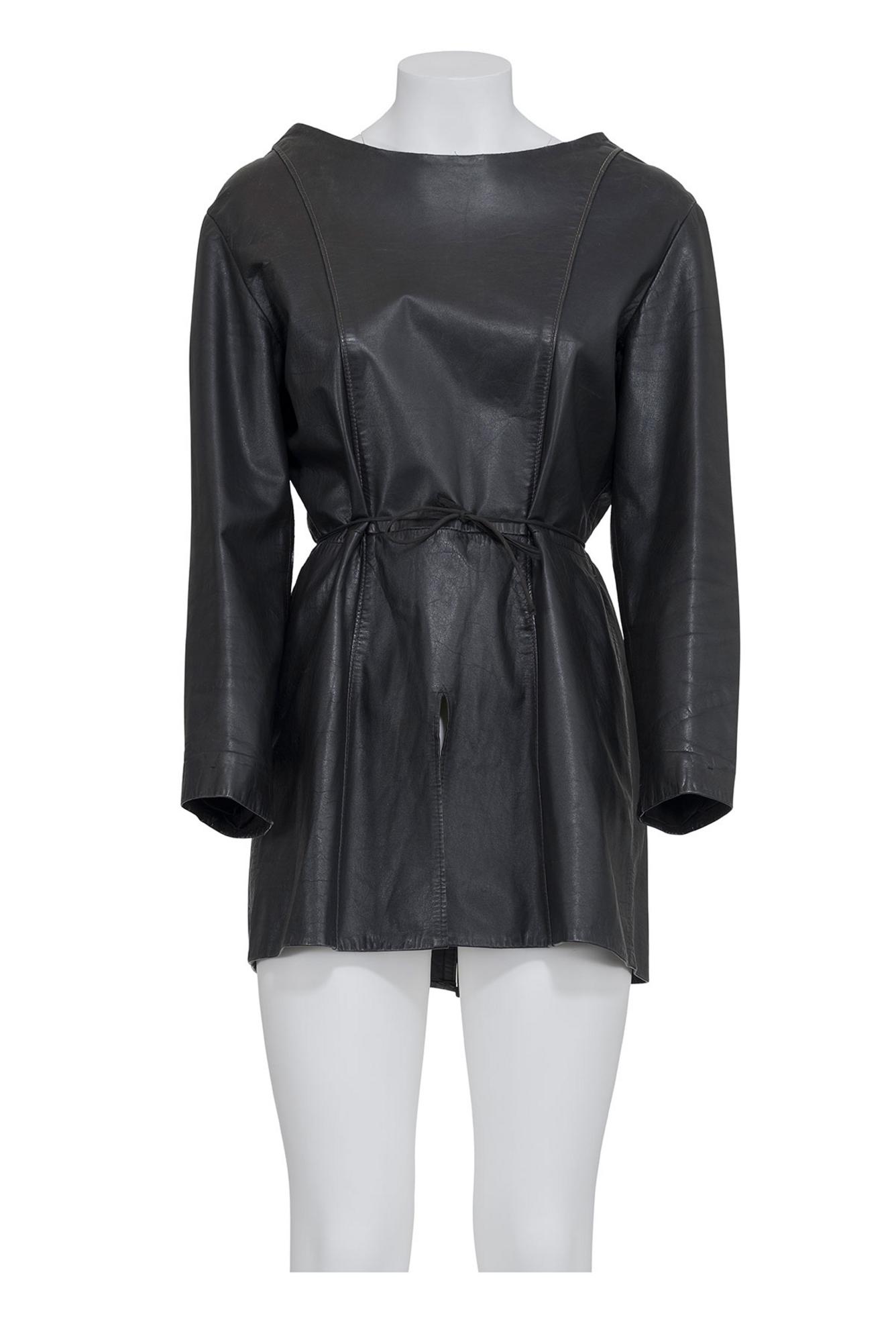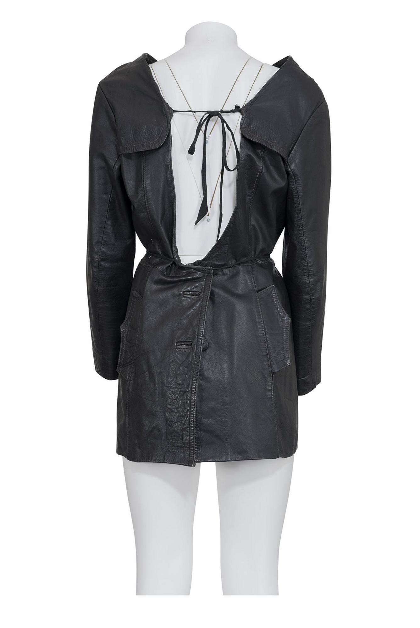 Rare and iconic artisanal customized black leather top made with a reversed vintage trench from SS 94 collection