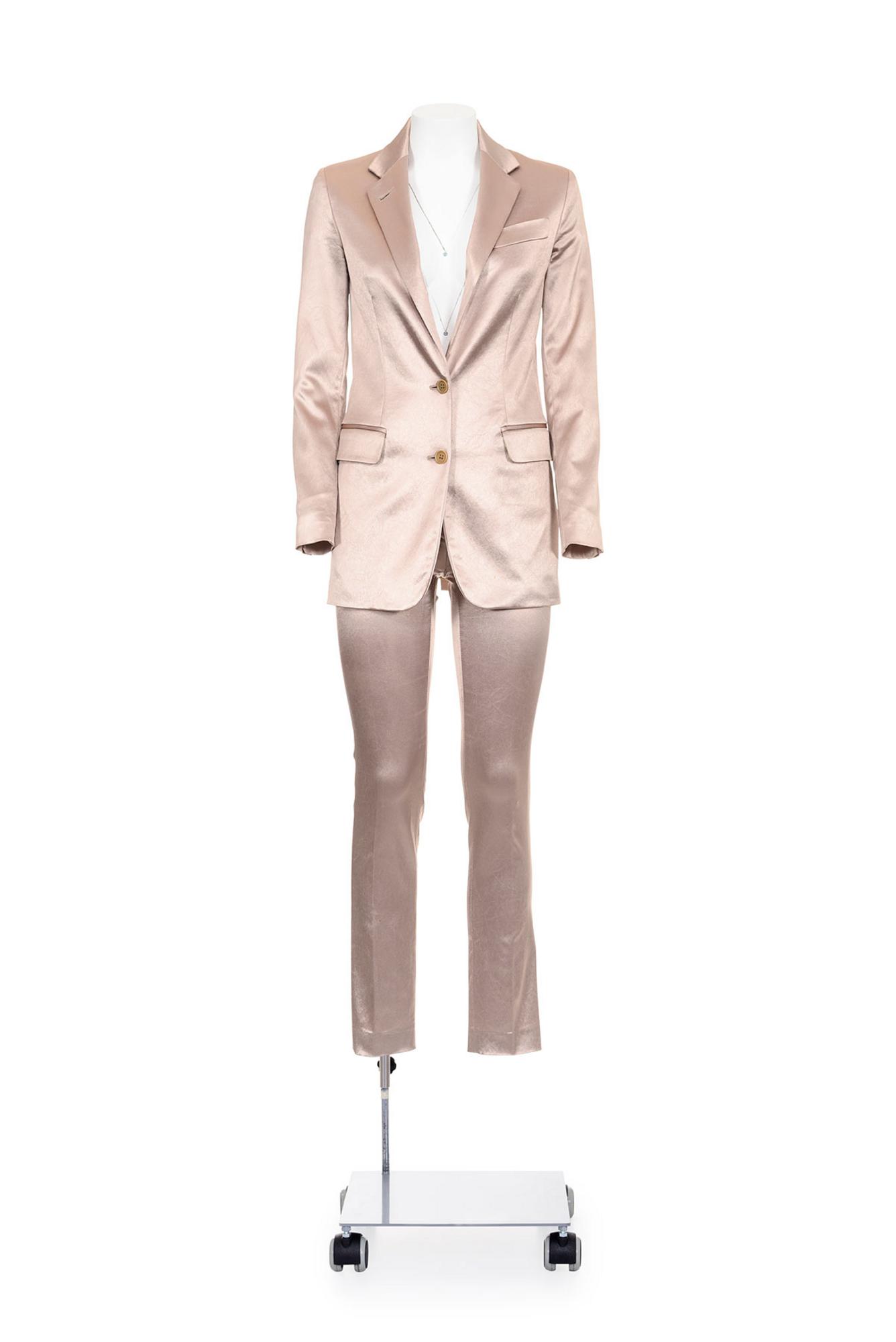 Iconic light pink stretch satin suit from the 90's