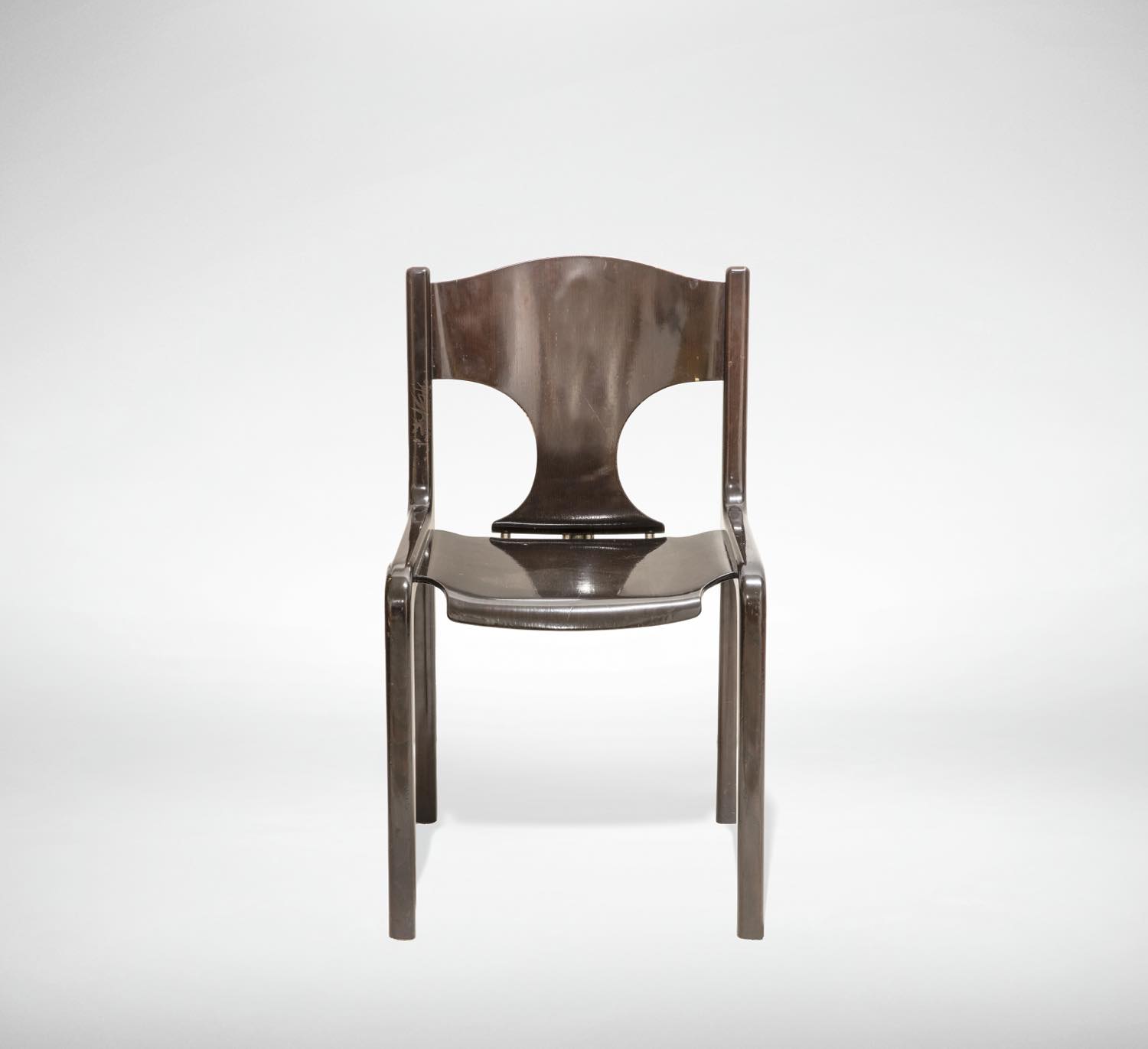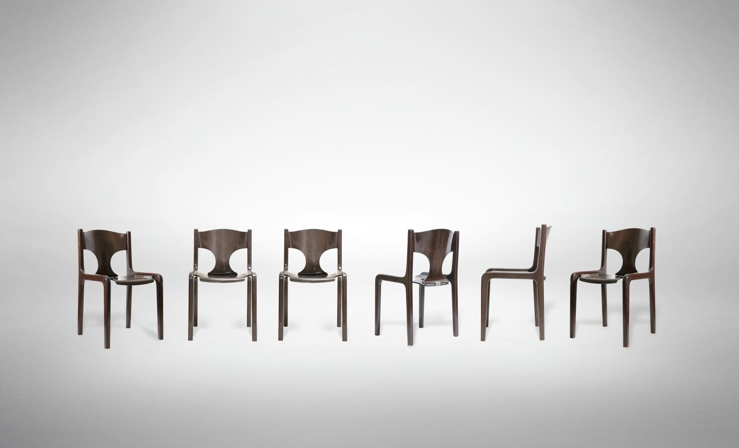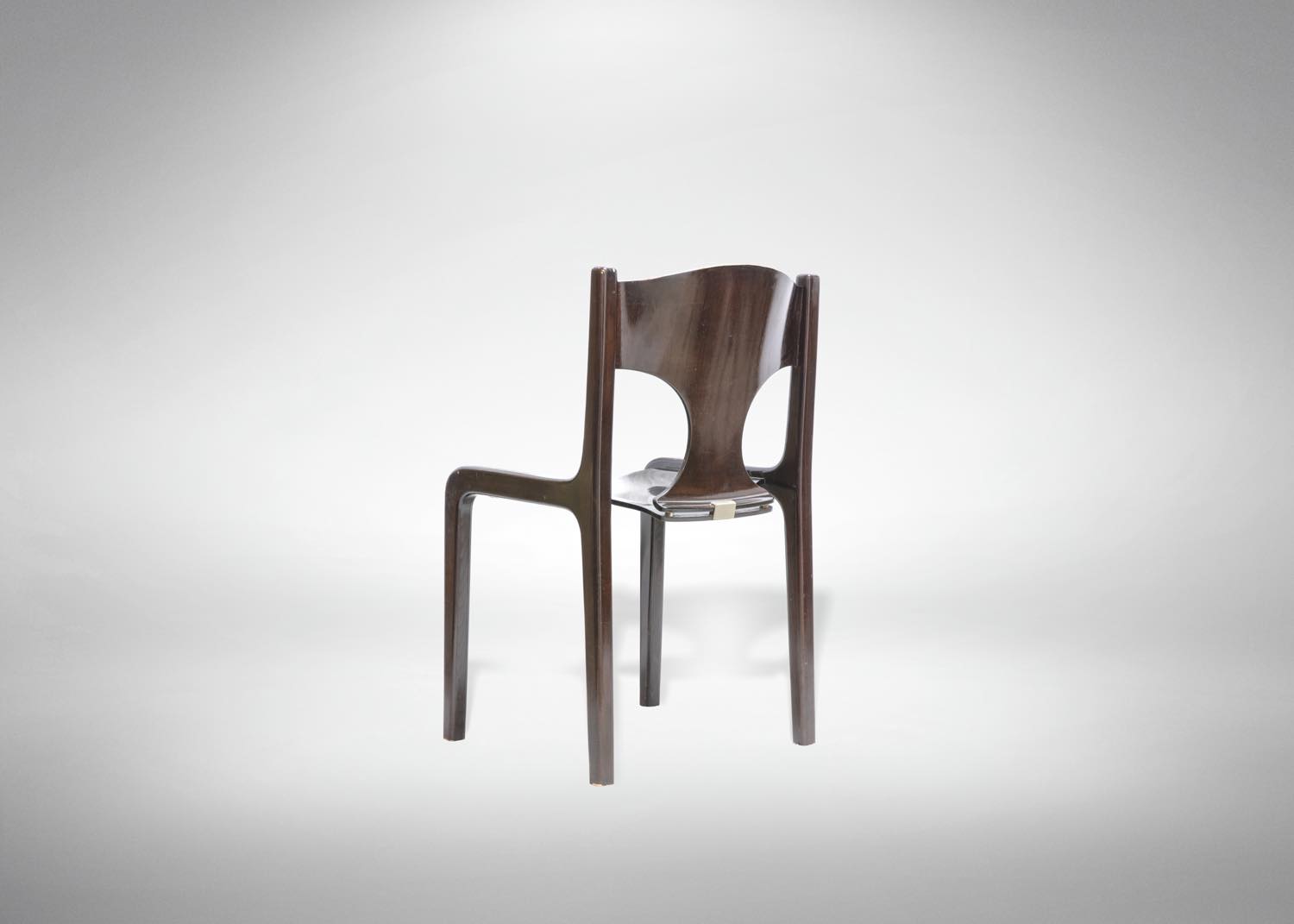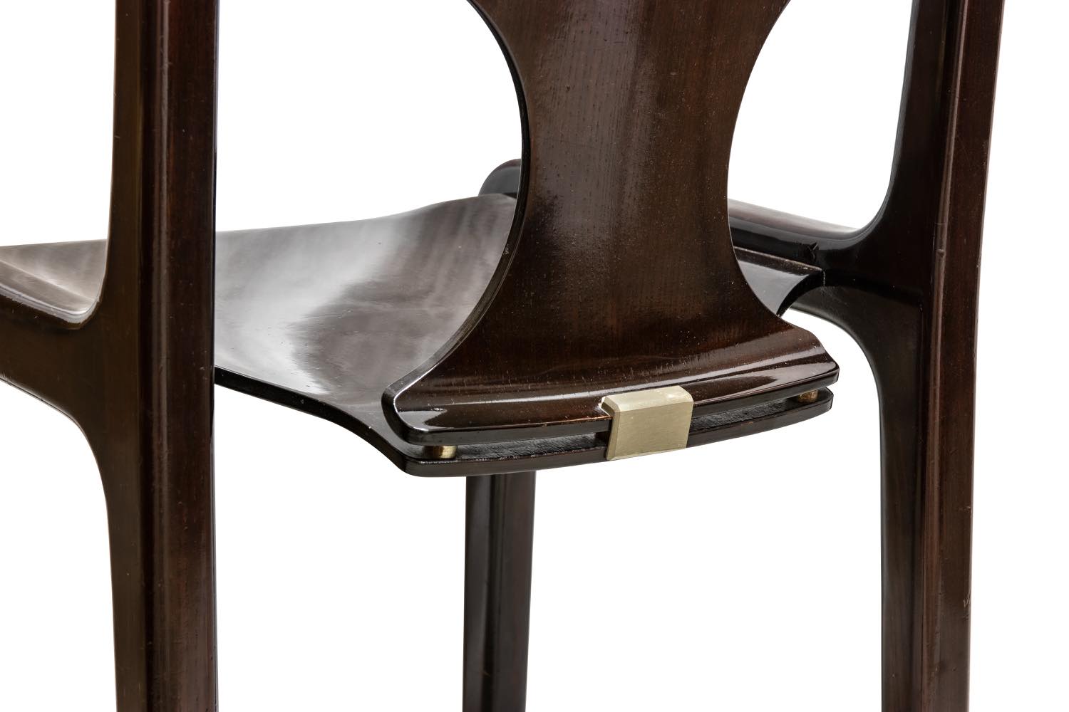 Set di 6 sedie vintage in legno e dettagli in ottone realizzato da Augusto Bozzi negli anni Settanta.